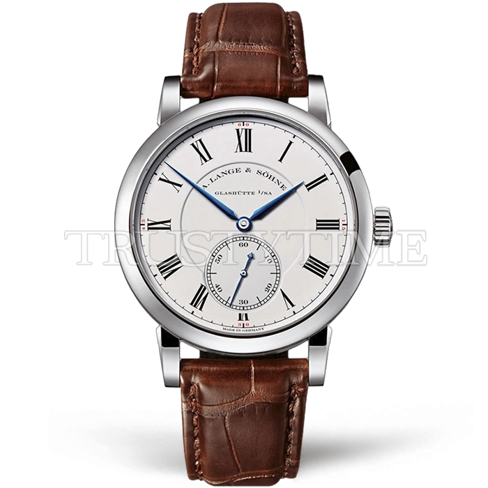 Часы A.Lange & Sohne из коллекции Richard Lange. Классические мужские часы A. Lange & Söhne Richard Lange Pour le Mérite 260.025 премиального качества (Артикул магазина: AS-0714) оснащены надежным автоматическим механизмом с автоподзаводом (работает от амплитуды движения руки) калибра ETA2824-2, в котором реализованы следующие функции: часовая, минутная и секундная стрелки, а так же максимально простой функционал без усложнений. Круглый корпус часов стального цвета, имеющий размер 40 мм и высоту 11 мм превосходно дополнит образ и украсит запястье своего обладателя. Для изготовления часов A. Lange & Söhne Richard Lange Pour le Mérite 260.025 предлагаемых в нашем интернет-магазине, применяются нержавеющая сталь 316L высокого качества (Швейцарский стандарт), а так же сапфировое стекло высокой прочности, благодаря чему обеспечивается максимальная защита от сколов и механических повреждений. Отличительной чертой данной модели является серебристый циферблат, часовые индексы которого обеспечивают римские цифры. Завершает образ кожаный ремешок коричневого цвета с фирменной классической застежкой A.Lange & Sohne. Водонепроницаемость данной модели составляет 30М (WR30) – допускается минимальное воздействие с водой.