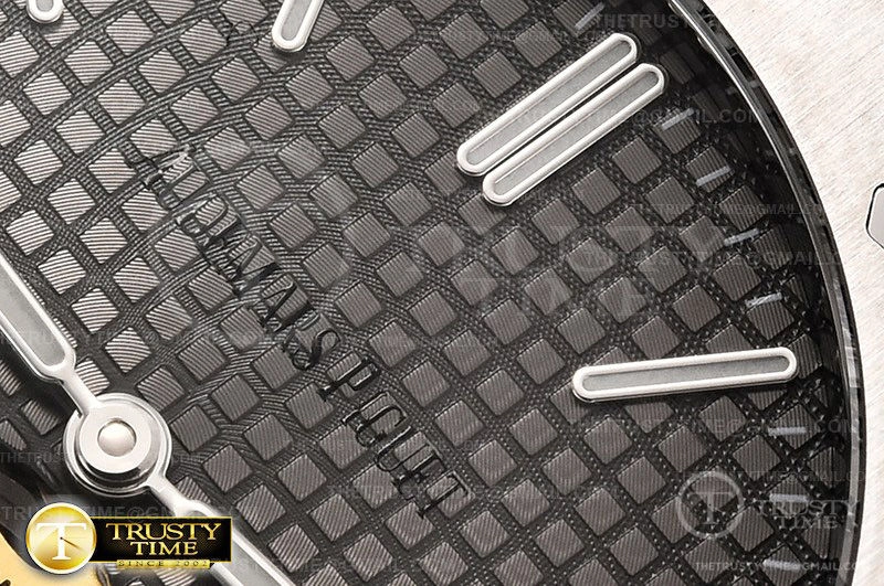 Часы Audemars Piguet из коллекции Royal Oak Tourbillon. Классические мужские часы Audemars Piguet Royal Oak Tourbillon Extra-Thin 26510PT.OO.1220PT.01 премиального качества (Артикул магазина: AP-0946) оснащены надежным автоматическим механизмом с ручным заводом калибра Seagull Handwind Tourbillon, в котором реализованы следующие функции: часова и минутка стрелки, а так же турбийон. Восьмиугольный корпус часов стального цвета, имеющий размер 41 мм и высоту 11 мм превосходно дополнит образ и украсит запястье своего обладателя. Для изготовления часов Audemars Piguet Royal Oak Tourbillon Extra-Thin 26510PT.OO.1220PT.01 предлагаемых в нашем интернет-магазине, применяются нержавеющая сталь 316F высокого качества (Швейцарский стандарт), а так же сапфировое стекло высокой прочности, благодаря чему обеспечивается максимальная защита от сколов и механических повреждений. Отличительной чертой данной модели является серый циферблат, часовые индексы которого обеспечивают часовые метки. Завершает образ браслет из нержавеющей стали стального цвета с фирменной раскладывающейся застежкой Audemars Piguet. Водонепроницаемость данной модели составляет 30М (WR30) – допускается минимальное воздействие с водой.