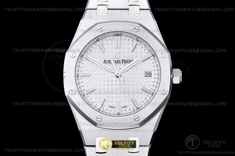 Часы Audemars Piguet из коллекции Royal Oak. Классические женские часы Audemars Piguet Royal Oak Selfwinding 34mm 77350ST.OO.1261ST.01 премиального качества (Артикул магазина: AP-0409) оснащены надежным автоматическим механизмом с автоподзаводом (работает от амплитуды движения руки) калибра AP5800, в котором реализованы следующие функции: часовая, минутная и секундная стрелки, а так же дата. Восьмиугольный корпус часов стального цвета, имеющий размер 34 мм и высоту 12 мм превосходно дополнит образ и украсит запястье своего обладателя. Для изготовления часов Audemars Piguet Royal Oak Selfwinding 34mm 77350ST.OO.1261ST.01 предлагаемых в нашем интернет-магазине, применяются нержавеющая сталь 316L высокого качества (Швейцарский стандарт), а так же сапфировое стекло высокой прочности, благодаря чему обеспечивается максимальная защита от сколов и механических повреждений. Отличительной чертой данной модели является белый циферблат, часовые индексы которого обеспечивают часовые метки. Завершает образ браслет из нержавеющей стали стального цвета с фирменной раскладывающейся застежкой Audemars Piguet. Водонепроницаемость данной модели составляет 30М (WR30) – допускается минимальное воздействие с водой.