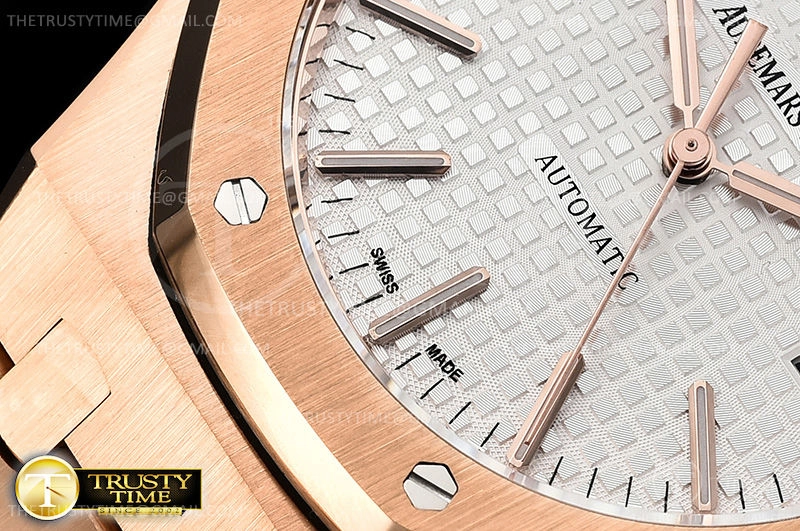Часы Audemars Piguet из коллекции Royal Oak. Классические мужские часы Audemars Piguet Royal Oak Automatic II 15400OR.OO.1220OR.02 премиального качества (Артикул магазина: AP-0688) оснащены надежным автоматическим механизмом с автоподзаводом (работает от амплитуды движения руки) калибра AP3120, в котором реализованы следующие функции: часовая, минутная и секундная стрелки, а так же дата. Восьмиугольный корпус часов розового цвета, имеющий размер 41 мм и высоту 10.7 мм превосходно дополнит образ и украсит запястье своего обладателя. Для изготовления часов Audemars Piguet Royal Oak Automatic II 15400OR.OO.1220OR.02 предлагаемых в нашем интернет-магазине, применяются нержавеющая сталь 316F высокого качества (Швейцарский стандарт), а так же сапфировое стекло высокой прочности, благодаря чему обеспечивается максимальная защита от сколов и механических повреждений. Отличительной чертой данной модели является серебристый циферблат, часовые индексы которого обеспечивают часовые метки. Завершает образ браслет из нержавеющей стали цвета розового золота с фирменной раскладывающейся застежкой Audemars Piguet. Водонепроницаемость данной модели составляет 30М (WR30) – допускается минимальное воздействие с водой.