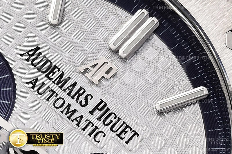 Часы Audemars Piguet из коллекции Royal Oak Chronograph. Спортивные мужские часы Audemars Piguet Royal Oak Chronograph 26315ST.OO.1256ST.01 премиального качества (Артикул магазина: AP-0766) оснащены надежным автоматическим механизмом с автоподзаводом (работает от амплитуды движения руки) калибра AP2385, в котором реализованы следующие функции: часовая, минутная и секундная стрелки, а так же хронограф, дата. Восьмиугольный корпус часов стального цвета, имеющий размер 41 мм и высоту 15 мм превосходно дополнит образ и украсит запястье своего обладателя. Для изготовления часов Audemars Piguet Royal Oak Chronograph 26315ST.OO.1256ST.01 предлагаемых в нашем интернет-магазине, применяются нержавеющая сталь 316F высокого качества (Швейцарский стандарт), а так же сапфировое стекло высокой прочности, благодаря чему обеспечивается максимальная защита от сколов и механических повреждений. Отличительной чертой данной модели является серебристый циферблат, часовые индексы которого обеспечивают часовые метки. Завершает образ браслет из нержавеющей стали стального цвета с фирменной раскладывающейся застежкой Audemars Piguet. Водонепроницаемость данной модели составляет 30М (WR30) – допускается минимальное воздействие с водой.