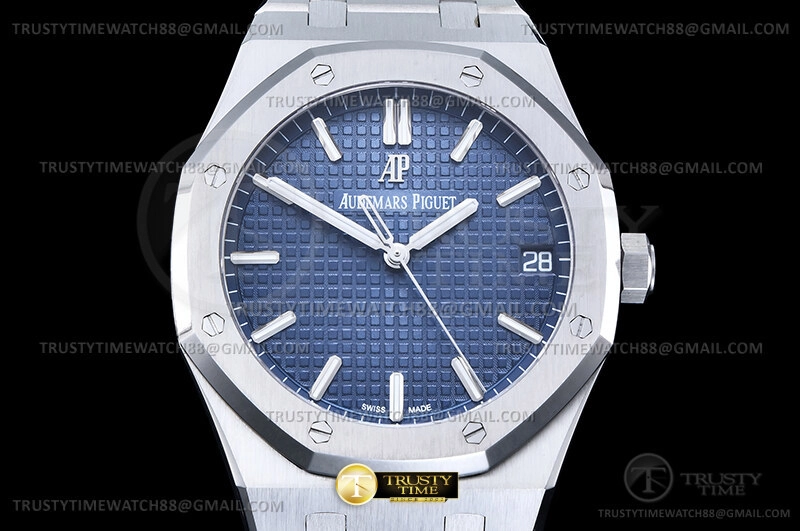 Часы Audemars Piguet из коллекции Royal Oak. Классические мужские часы Audemars Piguet Royal Oak Selfwinding II 15500ST.OO.1220ST.01 премиального качества (Артикул магазина: AP-0741) оснащены надежным автоматическим механизмом с автоподзаводом (работает от амплитуды движения руки) калибра AP4302, в котором реализованы следующие функции: часовая, минутная и секундная стрелки, а так же дата. Восьмиугольный корпус часов стального цвета, имеющий размер 41 мм и высоту 11 мм превосходно дополнит образ и украсит запястье своего обладателя. Для изготовления часов Audemars Piguet Royal Oak Selfwinding II 15500ST.OO.1220ST.01 предлагаемых в нашем интернет-магазине, применяются нержавеющая сталь 316F высокого качества (Швейцарский стандарт), а так же сапфировое стекло высокой прочности, благодаря чему обеспечивается максимальная защита от сколов и механических повреждений. Отличительной чертой данной модели является синий циферблат, часовые индексы которого обеспечивают часовые метки. Завершает образ браслет из нержавеющей стали стального цвета с фирменной раскладывающейся застежкой Audemars Piguet. Водонепроницаемость данной модели составляет 30М (WR30) – допускается минимальное воздействие с водой.