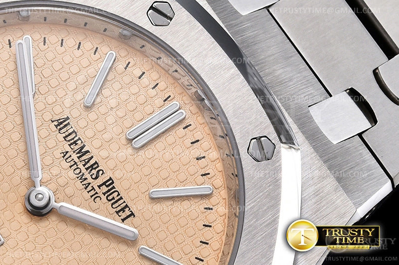 Часы Audemars Piguet из коллекции Royal Oak Jumbo. Классические мужские часы Audemars Piguet Royal Oak Jumbo Extra-thin 15202BC.OO.1240BC.01 премиального качества (Артикул магазина: AP-0964) оснащены надежным автоматическим механизмом с автоподзаводом (работает от амплитуды движения руки) калибра AP2121, в котором реализованы следующие функции: часова и минутка стрелки, а так же дата. Восьмиугольный корпус часов стального цвета, имеющий размер 39 мм и высоту 9 мм превосходно дополнит образ и украсит запястье своего обладателя. Для изготовления часов Audemars Piguet Royal Oak Jumbo Extra-thin 15202BC.OO.1240BC.01 предлагаемых в нашем интернет-магазине, применяются нержавеющая сталь 316F высокого качества (Швейцарский стандарт), а так же сапфировое стекло высокой прочности, благодаря чему обеспечивается максимальная защита от сколов и механических повреждений. Отличительной чертой данной модели является золотой циферблат, часовые индексы которого обеспечивают часовые метки. Завершает образ браслет из нержавеющей стали стального цвета с фирменной раскладывающейся застежкой Audemars Piguet. Водонепроницаемость данной модели составляет 30М (WR30) – допускается минимальное воздействие с водой.