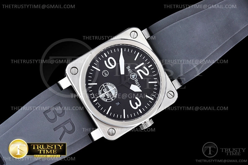 Часы Bell & Ross из коллекции BR 03-92. Классические мужские часы Bell & Ross BR 03-92 GIGN Limited Edition премиального качества (Артикул магазина: BR-0227) оснащены надежным автоматическим механизмом с автоподзаводом (работает от амплитуды движения руки) калибра MY9015, в котором реализованы следующие функции: часовая, минутная и секундная стрелки, а так же дата. Квадратный корпус часов стального цвета, имеющий размер 42 мм X 42 мм и высоту 11 мм превосходно дополнит образ и украсит запястье своего обладателя. Для изготовления часов Bell & Ross BR 03-92 GIGN Limited Edition предлагаемых в нашем интернет-магазине, применяются нержавеющая сталь 316L высокого качества (Швейцарский стандарт), а так же сапфировое стекло высокой прочности, благодаря чему обеспечивается максимальная защита от сколов и механических повреждений. Отличительной чертой данной модели является черный циферблат, часовые индексы которого обеспечивают часовые метки. Завершает образ каучуковый ремешок черного цвета с фирменной классической застежкой Bell & Ross. Водонепроницаемость данной модели составляет 30М (WR30) – допускается минимальное воздействие с водой.