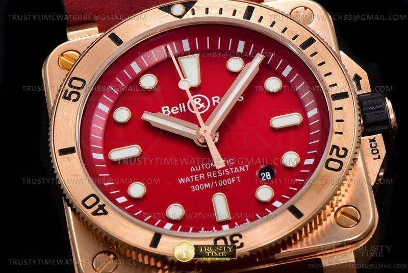 Реплика часов Bell & Ross BR 03-92 Diver Burgundy Bronze BR0392-D-RD-BR/SCA