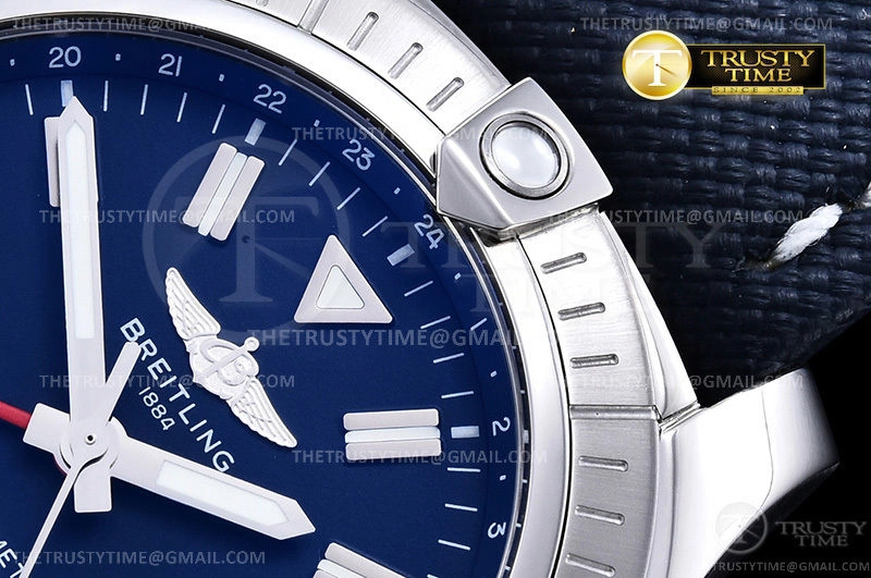 Часы Breitling из коллекции Avenger GMT. Классические мужские часы Breitling Avenger Automatic GMT 43 A32395101C1X1 премиального качества (Артикул магазина: BT-0553) оснащены надежным автоматическим механизмом с автоподзаводом (работает от амплитуды движения руки) калибра ETA2824-2, в котором реализованы следующие функции: часовая, минутная и секундная стрелки, а так же дата, двойное время (GMT). Круглый корпус часов стального цвета, имеющий размер 43 мм и высоту 12.5 мм превосходно дополнит образ и украсит запястье своего обладателя. Для изготовления часов Breitling Avenger Automatic GMT 43 A32395101C1X1 предлагаемых в нашем интернет-магазине, применяются нержавеющая сталь 316F высокого качества (Швейцарский стандарт), а так же сапфировое стекло высокой прочности, благодаря чему обеспечивается максимальная защита от сколов и механических повреждений. Отличительной чертой данной модели является синий циферблат, часовые индексы которого обеспечивают часовые метки. Завершает образ нейлоновый ремешок синего цвета с фирменной классической застежкой Breitling. Водонепроницаемость данной модели составляет 30М (WR30) – допускается минимальное воздействие с водой.