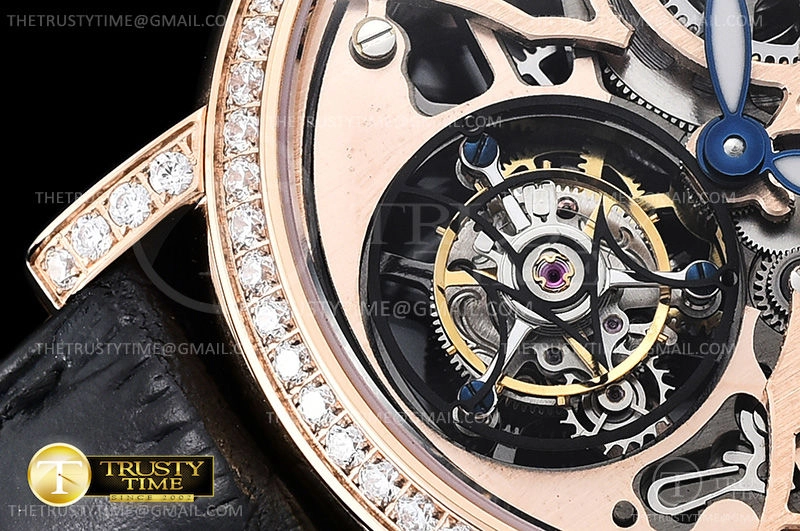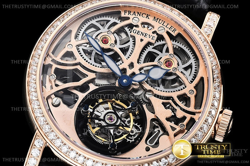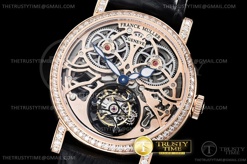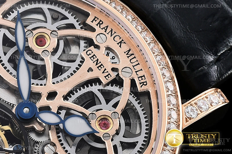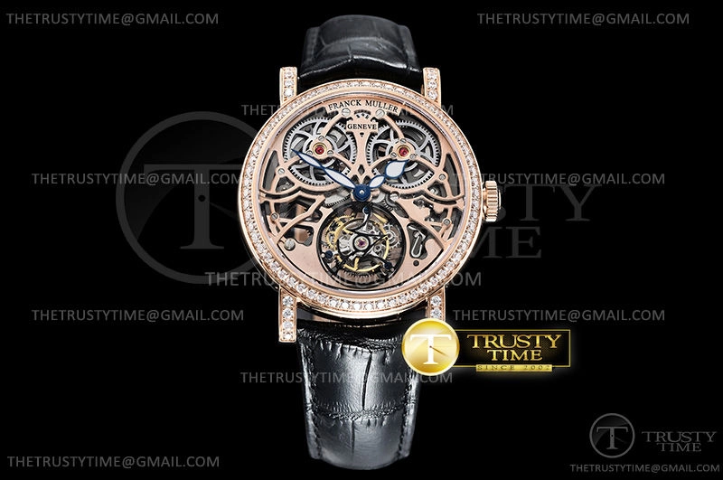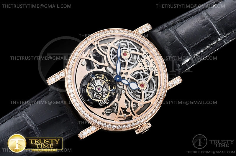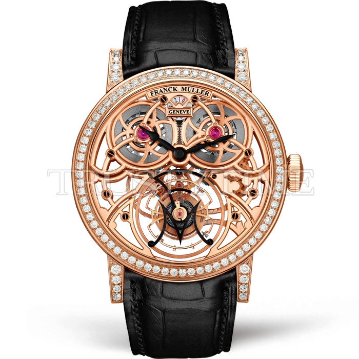 Часы Franck Muller из коллекции Cintree Curvex. Классические мужские, женские часы Franck Muller Cintree Curvex Giga Tourbillon 7048-T-G-SQT-BR-D премиального качества (Артикул магазина: FM-0556) оснащены надежным автоматическим механизмом с ручным заводом калибра Seagull Handwind Tourbillon, в котором реализованы следующие функции: часова и минутка стрелки, а так же турбийон. Круглый корпус часов розового цвета, имеющий размер 40 мм и высоту 11 мм превосходно дополнит образ и украсит запястье своего обладателя. Для изготовления часов Franck Muller Cintree Curvex Giga Tourbillon 7048-T-G-SQT-BR-D предлагаемых в нашем интернет-магазине, применяются нержавеющая сталь 316L высокого качества (Швейцарский стандарт), а так же сапфировое стекло высокой прочности, благодаря чему обеспечивается максимальная защита от сколов и механических повреждений. Отличительной чертой данной модели является скелетонизированный циферблат, без меток и цифр. Завершает образ кожаный ремешок черного цвета с фирменной классической застежкой Franck Muller. Водонепроницаемость данной модели составляет 30М (WR30) – допускается минимальное воздействие с водой.