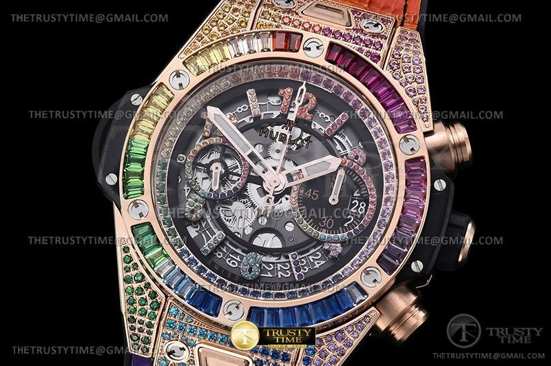 Реплика часов Hublot Big Bang Unico Rainbow King Gold 44mm 411.OX.9910.LR.0999