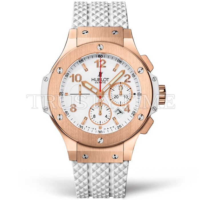 Часы Hublot из коллекции Big Bang. Спортивные мужские часы Hublot Big Bang Porto Cervo 44mm 301.PE.230.RW премиального качества (Артикул магазина: HB-0853) оснащены надежным автоматическим механизмом с автоподзаводом (работает от амплитуды движения руки) калибра HUB4100, в котором реализованы следующие функции: часовая, минутная и секундная стрелки, а так же хронограф, дата. Круглый корпус часов розового цвета, имеющий размер 44.5 мм и высоту 14.5 мм превосходно дополнит образ и украсит запястье своего обладателя. Для изготовления часов Hublot Big Bang Porto Cervo 44mm 301.PE.230.RW предлагаемых в нашем интернет-магазине, применяются нержавеющая сталь 316L высокого качества (Швейцарский стандарт), а так же сапфировое стекло высокой прочности, благодаря чему обеспечивается максимальная защита от сколов и механических повреждений. Отличительной чертой данной модели является белый циферблат, часовые индексы которого обеспечивают часовые метки. Завершает образ каучуковый ремешок белого цвета с фирменной раскладывающейся застежкой Hublot. Водонепроницаемость данной модели составляет 30М (WR30) – допускается минимальное воздействие с водой.