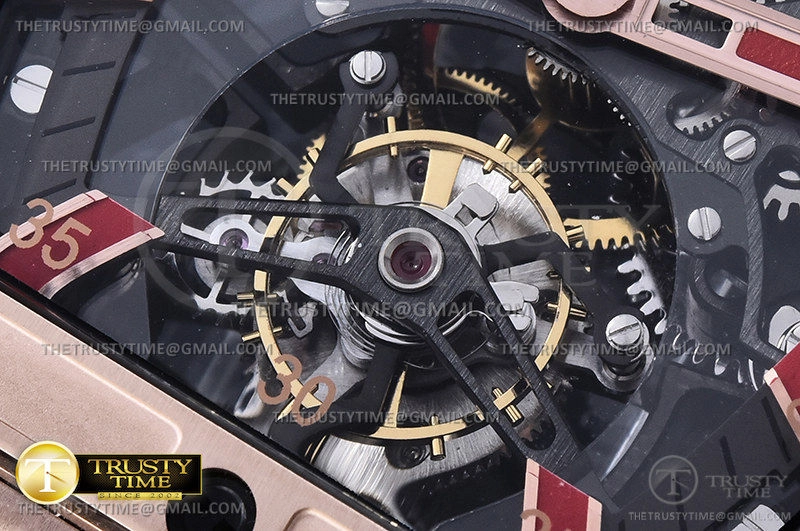 Часы Hublot из коллекции Spirit Of Big Bang. Спортивные мужские часы Hublot Masterpiece Mp 06 Senna King Gold 906.OX.0123.VR.AES13 премиального качества (Артикул магазина: HB-0557) оснащены надежным автоматическим механизмом с ручным заводом калибра Seagull Handwind Tourbillon, в котором реализованы следующие функции: часова и минутка стрелки, а так же турбийон. Бочкообразный корпус часов розового цвета, имеющий размер 42 мм и высоту 16.5 мм превосходно дополнит образ и украсит запястье своего обладателя. Для изготовления часов Hublot Masterpiece Mp 06 Senna King Gold 906.OX.0123.VR.AES13 предлагаемых в нашем интернет-магазине, применяются нержавеющая сталь 316L высокого качества (Швейцарский стандарт), а так же сапфировое стекло высокой прочности, благодаря чему обеспечивается максимальная защита от сколов и механических повреждений. Отличительной чертой данной модели является скелетонизированный циферблат, часовые индексы которого обеспечивают часовые метки. Завершает образ кожаный ремешок черного цвета с фирменной раскладывающейся застежкой Hublot. Водонепроницаемость данной модели составляет 30М (WR30) – допускается минимальное воздействие с водой.