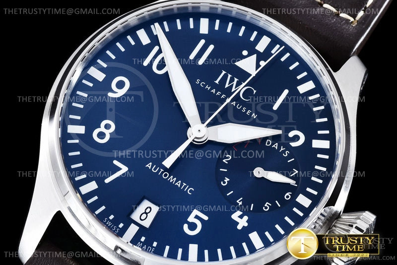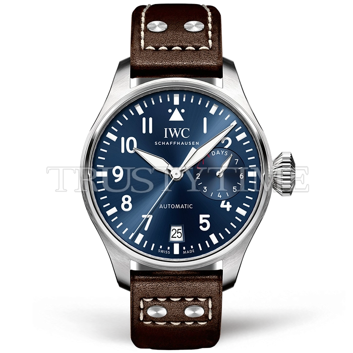 Часы IWC из коллекции Big Pilot's. Классические мужские часы IWC Pilot's Watch Edition le Petit Prince 46mm IW500916 премиального качества (Артикул магазина: IW-0479) оснащены надежным автоматическим механизмом с автоподзаводом (работает от амплитуды движения руки) калибра IWC521111, в котором реализованы следующие функции: часовая, минутная и секундная стрелки, а так же резерв хода, дата. Круглый корпус часов стального цвета, имеющий размер 46 мм и высоту 16 мм превосходно дополнит образ и украсит запястье своего обладателя. Для изготовления часов IWC Pilot's Watch Edition le Petit Prince 46mm IW500916 предлагаемых в нашем интернет-магазине, применяются нержавеющая сталь 316L высокого качества (Швейцарский стандарт), а так же сапфировое стекло высокой прочности, благодаря чему обеспечивается максимальная защита от сколов и механических повреждений. Отличительной чертой данной модели является синий циферблат, часовые индексы которого обеспечивают арабские цифры. Завершает образ кожаный ремешок коричневого цвета с фирменной раскладывающейся застежкой IWC. Водонепроницаемость данной модели составляет 30М (WR30) – допускается минимальное воздействие с водой.