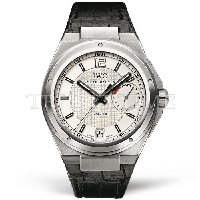 Часы IWC из коллекции Ingenieur. Классические мужские часы IWC Big Ingenieur 45mm IW500502 премиального качества (Артикул магазина: IW-0496) оснащены надежным автоматическим механизмом с автоподзаводом (работает от амплитуды движения руки) калибра IWC51113, в котором реализованы следующие функции: часовая, минутная и секундная стрелки, а так же резерв хода, дата. Круглый корпус часов стального цвета, имеющий размер 45.5 мм и высоту 14 мм превосходно дополнит образ и украсит запястье своего обладателя. Для изготовления часов IWC Big Ingenieur 45mm IW500502 предлагаемых в нашем интернет-магазине, применяются нержавеющая сталь 316L высокого качества (Швейцарский стандарт), а так же сапфировое стекло высокой прочности, благодаря чему обеспечивается максимальная защита от сколов и механических повреждений. Отличительной чертой данной модели является белый циферблат, часовые индексы которого обеспечивают часовые метки. Завершает образ кожаный ремешок черного цвета с фирменной классической застежкой IWC. Водонепроницаемость данной модели составляет 30М (WR30) – допускается минимальное воздействие с водой.