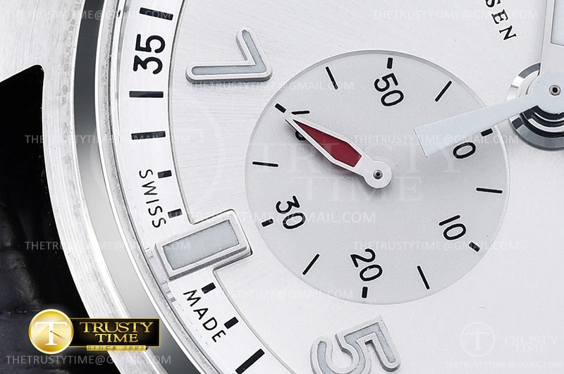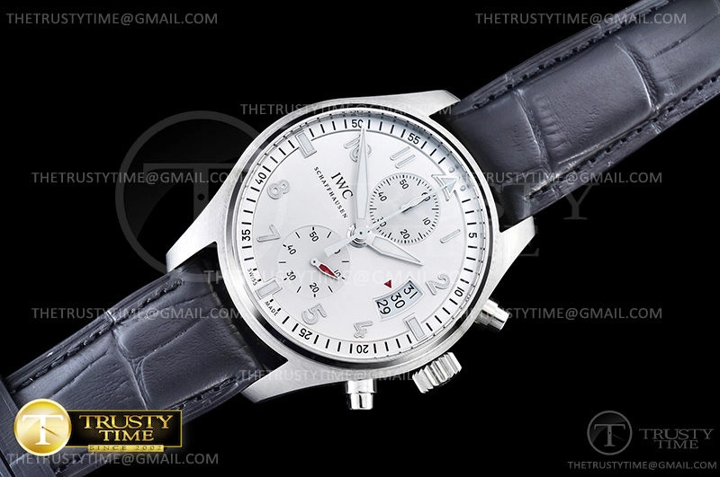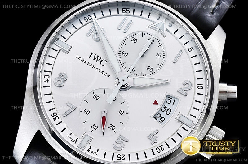 Часы IWC из коллекции Pilot's Chronograph. Спортивные мужские часы IWC Pilot’s Watch Chronograph Edition JU-Air 43mm IW387809 премиального качества (Артикул магазина: IW-0547) оснащены надежным автоматическим механизмом с автоподзаводом (работает от амплитуды движения руки) калибра Valjoux-7750, в котором реализованы следующие функции: часовая, минутная и секундная стрелки, а так же хронограф, дата. Круглый корпус часов стального цвета, имеющий размер 43 мм и высоту 16 мм превосходно дополнит образ и украсит запястье своего обладателя. Для изготовления часов IWC Pilot’s Watch Chronograph Edition JU-Air 43mm IW387809 предлагаемых в нашем интернет-магазине, применяются нержавеющая сталь 316F высокого качества (Швейцарский стандарт), а так же сапфировое стекло высокой прочности, благодаря чему обеспечивается максимальная защита от сколов и механических повреждений. Отличительной чертой данной модели является серебристый циферблат, часовые индексы которого обеспечивают арабские цифры. Завершает образ кожаный ремешок черного цвета с фирменной раскладывающейся застежкой IWC. Водонепроницаемость данной модели составляет 30М (WR30) – допускается минимальное воздействие с водой.