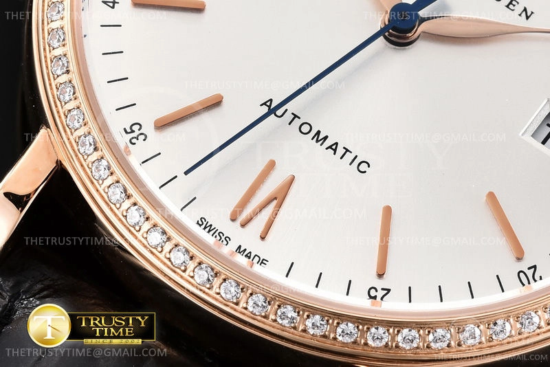 Часы IWC из коллекции Portofino. Классические мужские, женские часы IWC Portofino Automatic 40mm IW356515 премиального качества (Артикул магазина: IW-0588) оснащены надежным автоматическим механизмом с автоподзаводом (работает от амплитуды движения руки) калибра MY9015, в котором реализованы следующие функции: часовая, минутная и секундная стрелки, а так же дата. Круглый корпус часов розового цвета, имеющий размер 40 мм и высоту 9 мм превосходно дополнит образ и украсит запястье своего обладателя. Для изготовления часов IWC Portofino Automatic 40mm IW356515 предлагаемых в нашем интернет-магазине, применяются нержавеющая сталь 316L высокого качества (Швейцарский стандарт), а так же сапфировое стекло высокой прочности, благодаря чему обеспечивается максимальная защита от сколов и механических повреждений. Отличительной чертой данной модели является серебристый циферблат, часовые индексы которого обеспечивают часовые метки. Завершает образ кожаный ремешок черного цвета с фирменной классической застежкой IWC. Водонепроницаемость данной модели составляет 30М (WR30) – допускается минимальное воздействие с водой.