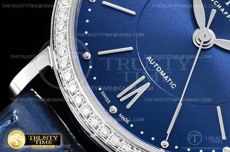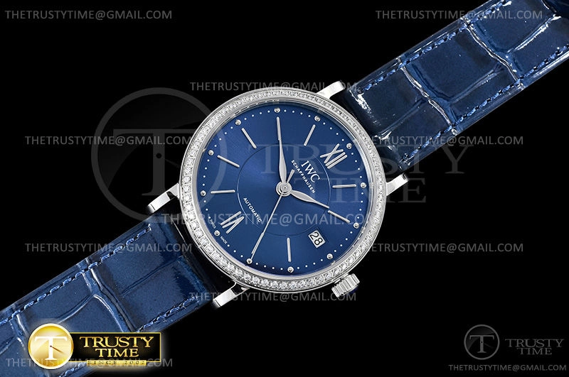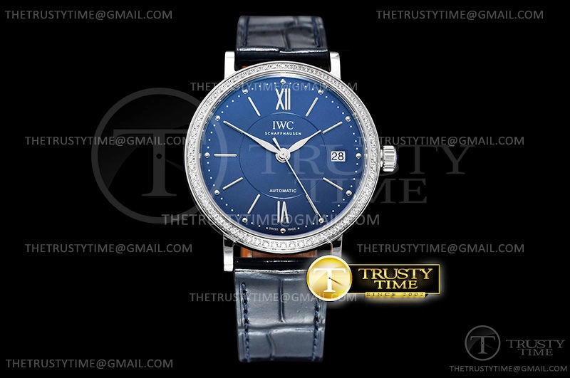 Часы IWC из коллекции Portofino. Классические женские часы IWC Portofino Automatic 37mm IW458111 премиального качества (Артикул магазина: IW-0571) оснащены надежным автоматическим механизмом с автоподзаводом (работает от амплитуды движения руки) калибра MY9015, в котором реализованы следующие функции: часовая, минутная и секундная стрелки, а так же дата. Круглый корпус часов стального цвета, имеющий размер 37 мм и высоту 9 мм превосходно дополнит образ и украсит запястье своего обладателя. Для изготовления часов IWC Portofino Automatic 37mm IW458111 предлагаемых в нашем интернет-магазине, применяются нержавеющая сталь 316L высокого качества (Швейцарский стандарт), а так же сапфировое стекло высокой прочности, благодаря чему обеспечивается максимальная защита от сколов и механических повреждений. Отличительной чертой данной модели является синий циферблат, часовые индексы которого обеспечивают часовые метки. Завершает образ кожаный ремешок синего цвета с фирменной классической застежкой IWC. Водонепроницаемость данной модели составляет 30М (WR30) – допускается минимальное воздействие с водой.