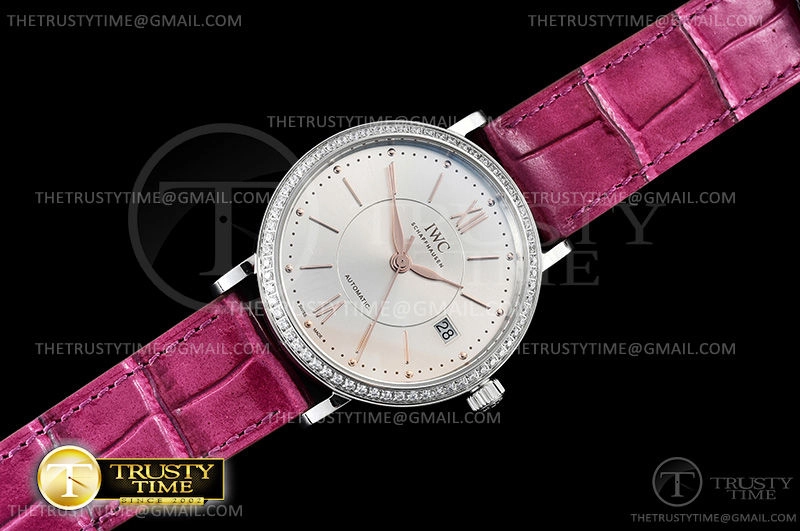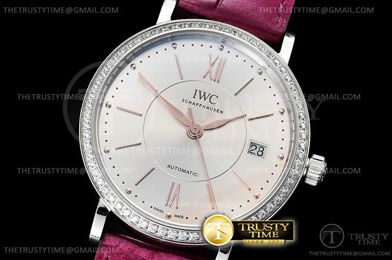 Часы IWC из коллекции Portofino. Классические женские часы IWC Portofino Automatic 37mm IW458112 премиального качества (Артикул магазина: IW-0574) оснащены надежным автоматическим механизмом с автоподзаводом (работает от амплитуды движения руки) калибра MY9015, в котором реализованы следующие функции: часовая, минутная и секундная стрелки, а так же дата. Круглый корпус часов стального цвета, имеющий размер 37 мм и высоту 9 мм превосходно дополнит образ и украсит запястье своего обладателя. Для изготовления часов IWC Portofino Automatic 37mm IW458112 предлагаемых в нашем интернет-магазине, применяются нержавеющая сталь 316L высокого качества (Швейцарский стандарт), а так же сапфировое стекло высокой прочности, благодаря чему обеспечивается максимальная защита от сколов и механических повреждений. Отличительной чертой данной модели является серебристый циферблат, часовые индексы которого обеспечивают часовые метки. Завершает образ кожаный ремешок розового цвета с фирменной классической застежкой IWC. Водонепроницаемость данной модели составляет 30М (WR30) – допускается минимальное воздействие с водой.