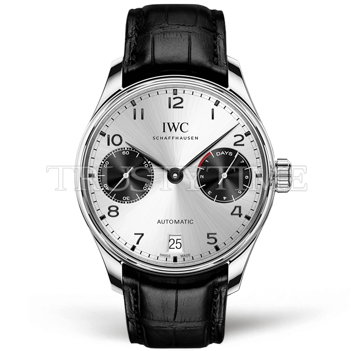 Часы IWC из коллекции Portugieser. Классические мужские часы IWC Portugieser Automatic Beijing International Film Festival 2015 42mm IW500706 премиального качества (Артикул магазина: IW-0662) оснащены надежным автоматическим механизмом с автоподзаводом (работает от амплитуды движения руки) калибра IWC52010, в котором реализованы следующие функции: часовая, минутная и секундная стрелки, а так же резерв хода, дата. Круглый корпус часов стального цвета, имеющий размер 42 мм и высоту 14.5 мм превосходно дополнит образ и украсит запястье своего обладателя. Для изготовления часов IWC Portugieser Automatic Beijing International Film Festival 2015 42mm IW500706 предлагаемых в нашем интернет-магазине, применяются нержавеющая сталь 316L высокого качества (Швейцарский стандарт), а так же сапфировое стекло высокой прочности, благодаря чему обеспечивается максимальная защита от сколов и механических повреждений. Отличительной чертой данной модели является серебристый циферблат, часовые индексы которого обеспечивают арабские цифры. Завершает образ кожаный ремешок черного цвета с фирменной раскладывающейся застежкой IWC. Водонепроницаемость данной модели составляет 30М (WR30) – допускается минимальное воздействие с водой.