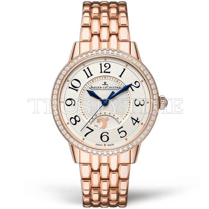 Часы Jaeger Le Coultre из коллекции Rendez-Vous. Классические женские часы Jaeger-LeCoultre Classic Rendez-Vous Night & Day 34mm 3442120 премиального качества (Артикул магазина: JL-0290) оснащены надежным автоматическим механизмом с автоподзаводом (работает от амплитуды движения руки) калибра MY9015, в котором реализованы следующие функции: часовая, минутная и секундная стрелки, а так же день-ночь. Круглый корпус часов розового цвета, имеющий размер 34 мм и высоту 10 мм превосходно дополнит образ и украсит запястье своего обладателя. Для изготовления часов Jaeger-LeCoultre Classic Rendez-Vous Night & Day 34mm 3442120 предлагаемых в нашем интернет-магазине, применяются нержавеющая сталь 316L высокого качества (Швейцарский стандарт), а так же сапфировое стекло высокой прочности, благодаря чему обеспечивается максимальная защита от сколов и механических повреждений. Отличительной чертой данной модели является белый циферблат, часовые индексы которого обеспечивают арабские цифры. Завершает образ браслет из нержавеющей стали цвета розового золота с фирменной раскладывающейся застежкой Jaeger Le Coultre. Водонепроницаемость данной модели составляет 30М (WR30) – допускается минимальное воздействие с водой.