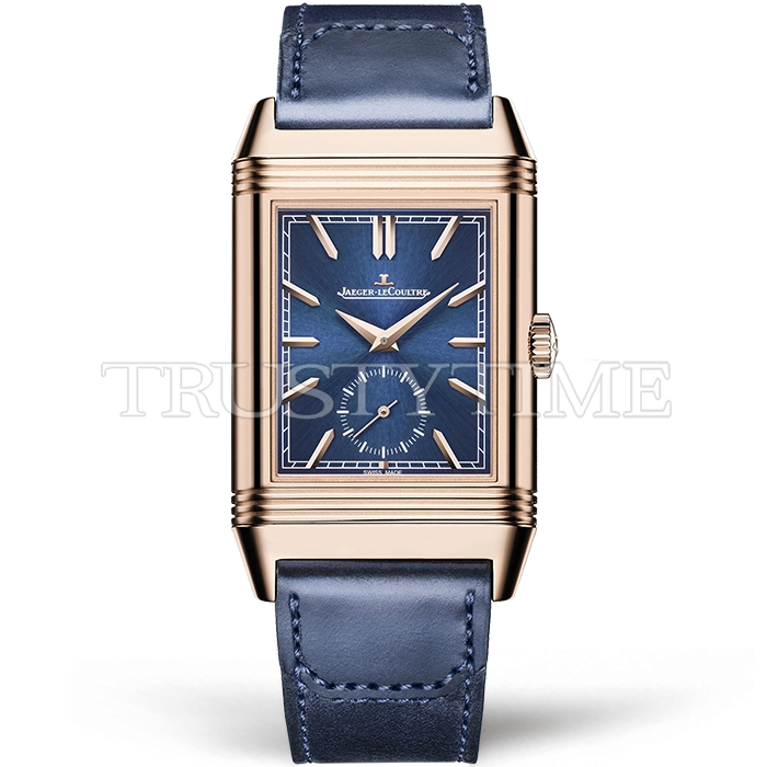 Часы Jaeger Le Coultre из коллекции Reverso. Классические мужские часы Jaeger-LeCoultre Reverso Tribute Duoface Fagliano Limited 398258J премиального качества (Артикул магазина: JL-0414) оснащены надежным автоматическим механизмом с автоподзаводом (работает от амплитуды движения руки) калибра 822, в котором реализованы следующие функции: часовая, минутная и секундная стрелки, а так же максимально простой функционал без усложнений. Прямоугольный корпус часов розового цвета, имеющий размер 30 мм X 40 мм и высоту 12 мм превосходно дополнит образ и украсит запястье своего обладателя. Для изготовления часов Jaeger-LeCoultre Reverso Tribute Duoface Fagliano Limited 398258J предлагаемых в нашем интернет-магазине, применяются нержавеющая сталь 316L высокого качества (Швейцарский стандарт), а так же сапфировое стекло высокой прочности, благодаря чему обеспечивается максимальная защита от сколов и механических повреждений. Отличительной чертой данной модели является синий циферблат, часовые индексы которого обеспечивают часовые метки. Завершает образ кожаный ремешок синего цвета с фирменной раскладывающейся застежкой Jaeger Le Coultre. Водонепроницаемость данной модели составляет 30М (WR30) – допускается минимальное воздействие с водой.