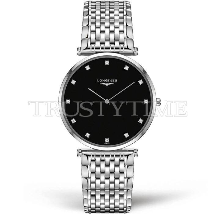 Часы Longines из коллекции La Grande Classique. Классические женские часы Longines La Grande Classique Quartz 37mm L4.766.4.58.6 премиального качества (Артикул магазина: LN-0340) оснащены надежным кварцевым механизмом (работает от батареи) калибра Swiss Quartz ETA, в котором реализованы следующие функции: часова и минутка стрелки, а так же максимально простой функционал без усложнений. Круглый корпус часов стального цвета, имеющий размер 37 мм и высоту превосходно дополнит образ и украсит запястье своего обладателя. Для изготовления часов Longines La Grande Classique Quartz 37mm L4.766.4.58.6 предлагаемых в нашем интернет-магазине, применяются нержавеющая сталь 316F высокого качества (Швейцарский стандарт), а так же сапфировое стекло высокой прочности, благодаря чему обеспечивается максимальная защита от сколов и механических повреждений. Отличительной чертой данной модели является черный циферблат, часовые индексы которого обеспечивают камни. Завершает образ браслет из нержавеющей стали стального цвета с фирменной раскладывающейся застежкой Longines. Водонепроницаемость данной модели составляет 30М (WR30) – допускается минимальное воздействие с водой.