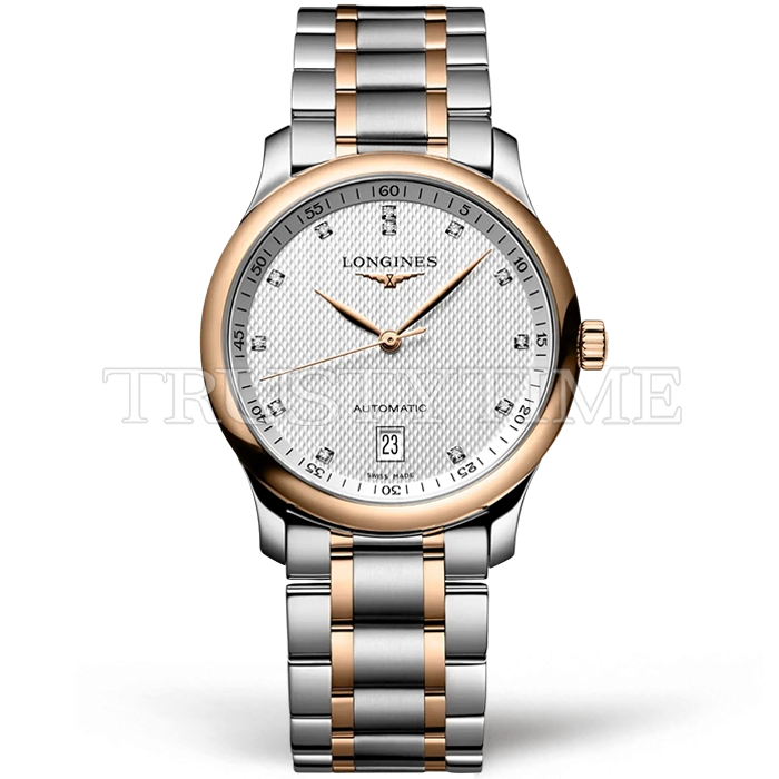 Часы Longines из коллекции Master Collection. Классические мужские часы Longines Master Collection Date 38mm L2.628.5.97.7 премиального качества (Артикул магазина: LN-0365) оснащены надежным автоматическим механизмом с автоподзаводом (работает от амплитуды движения руки) калибра MY9015, в котором реализованы следующие функции: часовая, минутная и секундная стрелки, а так же дата. Круглый корпус часов комбинированного сталь с розового золота цвета, имеющий размер 38.5 мм и высоту 9.5 мм превосходно дополнит образ и украсит запястье своего обладателя. Для изготовления часов Longines Master Collection Date 38mm L2.628.5.97.7 предлагаемых в нашем интернет-магазине, применяются нержавеющая сталь 316F высокого качества (Швейцарский стандарт), а так же сапфировое стекло высокой прочности, благодаря чему обеспечивается максимальная защита от сколов и механических повреждений. Отличительной чертой данной модели является серебристый циферблат, часовые индексы которого обеспечивают камни. Завершает образ браслет из нержавеющей стали комбинированного сталь с розовым золотом цвета с фирменной раскладывающейся застежкой Longines. Водонепроницаемость данной модели составляет 30М (WR30) – допускается минимальное воздействие с водой.
