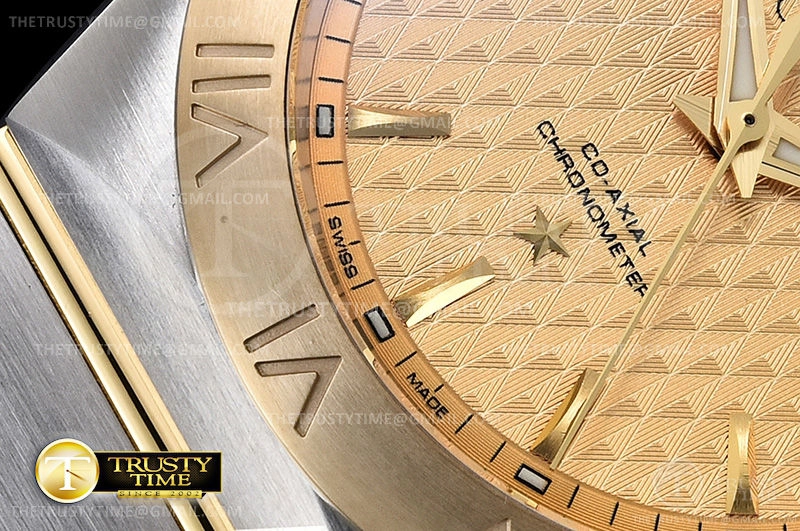 Часы Omega из коллекции Constellation. Классические мужские часы Omega Constellation Co-Axial Chronometer 38mm 123.20.38.21.08.002 премиального качества (Артикул магазина: OM-0453) оснащены надежным автоматическим механизмом с автоподзаводом (работает от амплитуды движения руки) калибра 8500, в котором реализованы следующие функции: часовая, минутная и секундная стрелки, а так же дата. Круглый корпус часов комбинированного сталь с желтого золота цвета, имеющий размер 38 мм и высоту 13 мм превосходно дополнит образ и украсит запястье своего обладателя. Для изготовления часов Omega Constellation Co-Axial Chronometer 38mm 123.20.38.21.08.002 предлагаемых в нашем интернет-магазине, применяются нержавеющая сталь 316F высокого качества (Швейцарский стандарт), а так же сапфировое стекло высокой прочности, благодаря чему обеспечивается максимальная защита от сколов и механических повреждений. Отличительной чертой данной модели является золотой циферблат, часовые индексы которого обеспечивают часовые метки. Завершает образ браслет из нержавеющей стали комбинированного сталь с желтым золотом цвета с фирменной раскладывающейся застежкой Omega. Водонепроницаемость данной модели составляет 30М (WR30) – допускается минимальное воздействие с водой.