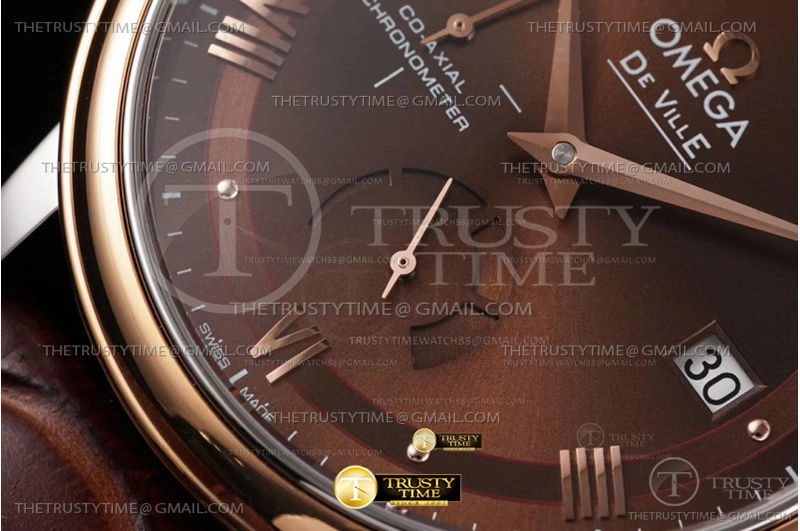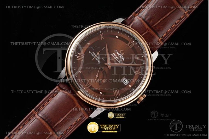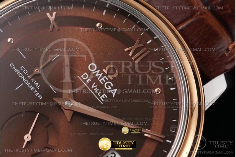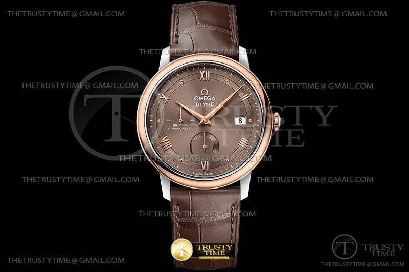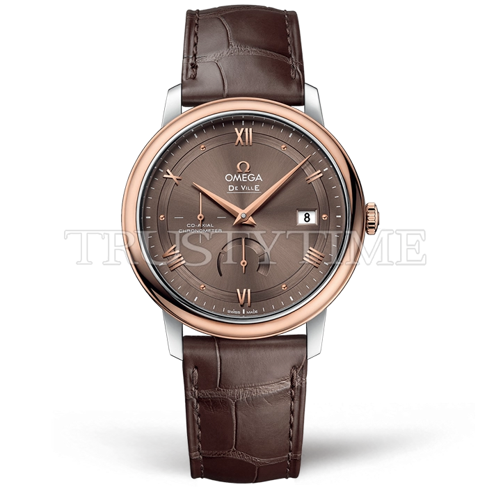 Часы Omega из коллекции De Ville Prestige. Классические мужские часы Omega De Ville Prestige Co‑Axial Chronometer Power Reserve 39mm 424.23.40.21.13.001 премиального качества (Артикул магазина: OM-0869) оснащены надежным автоматическим механизмом с автоподзаводом (работает от амплитуды движения руки) калибра 2627, в котором реализованы следующие функции: часовая, минутная и секундная стрелки, а так же резерв хода, дата. Круглый корпус часов комбинированного сталь с розового золота цвета, имеющий размер 39.5 мм и высоту 12.5 мм превосходно дополнит образ и украсит запястье своего обладателя. Для изготовления часов Omega De Ville Prestige Co‑Axial Chronometer Power Reserve 39mm 424.23.40.21.13.001 предлагаемых в нашем интернет-магазине, применяются нержавеющая сталь 316F высокого качества (Швейцарский стандарт), а так же сапфировое стекло высокой прочности, благодаря чему обеспечивается максимальная защита от сколов и механических повреждений. Отличительной чертой данной модели является коричневый циферблат, часовые индексы которого обеспечивают римские цифры. Завершает образ кожаный ремешок коричневого цвета с фирменной классической застежкой Omega. Водонепроницаемость данной модели составляет 30М (WR30) – допускается минимальное воздействие с водой.