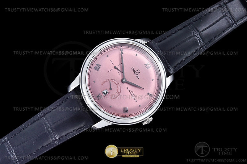 Часы Omega из коллекции De Ville Prestige. Классические мужские часы Omega De Ville Prestige Co-axial Master Chronometer Power Reserve 41mm 434.13.41.21.10.001 премиального качества (Артикул магазина: OM-0970) оснащены надежным автоматическим механизмом с автоподзаводом (работает от амплитуды движения руки) калибра 8810, в котором реализованы следующие функции: часовая, минутная и секундная стрелки, а так же резерв хода, дата. Круглый корпус часов стального цвета, имеющий размер 41 мм и высоту 13 мм превосходно дополнит образ и украсит запястье своего обладателя. Для изготовления часов Omega De Ville Prestige Co-axial Master Chronometer Power Reserve 41mm 434.13.41.21.10.001 предлагаемых в нашем интернет-магазине, применяются нержавеющая сталь 316F высокого качества (Швейцарский стандарт), а так же сапфировое стекло высокой прочности, благодаря чему обеспечивается максимальная защита от сколов и механических повреждений. Отличительной чертой данной модели является розовый циферблат, часовые индексы которого обеспечивают часовые метки, часовые индексы которого обеспечивают римские цифры. Завершает образ кожаный ремешок черного цвета с фирменной классической застежкой Omega. Водонепроницаемость данной модели составляет 30М (WR30) – допускается минимальное воздействие с водой.