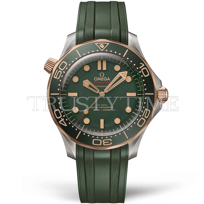 Часы Omega из коллекции Seamaster Diver. Классические мужские часы Omega Seamaster Diver 300 Co-axial Master Chronometer 42mm 210.92.42.20.10.001 премиального качества (Артикул магазина: OM-1027) оснащены надежным автоматическим механизмом с автоподзаводом (работает от амплитуды движения руки) калибра 8806, в котором реализованы следующие функции: часовая, минутная и секундная стрелки, а так же максимально простой функционал без усложнений. Круглый корпус часов серого цвета, имеющий размер 42 мм и высоту 13.8 мм превосходно дополнит образ и украсит запястье своего обладателя. Для изготовления часов Omega Seamaster Diver 300 Co-axial Master Chronometer 42mm 210.92.42.20.10.001 предлагаемых в нашем интернет-магазине, применяются титан высокого качества (Швейцарский стандарт), а так же сапфировое стекло высокой прочности, благодаря чему обеспечивается максимальная защита от сколов и механических повреждений. Отличительной чертой данной модели является зеленый циферблат, часовые индексы которого обеспечивают часовые метки. Завершает образ каучуковый ремешок черного цвета с фирменной раскладывающейся застежкой Omega. Водонепроницаемость данной модели составляет 30М (WR30) – допускается минимальное воздействие с водой.