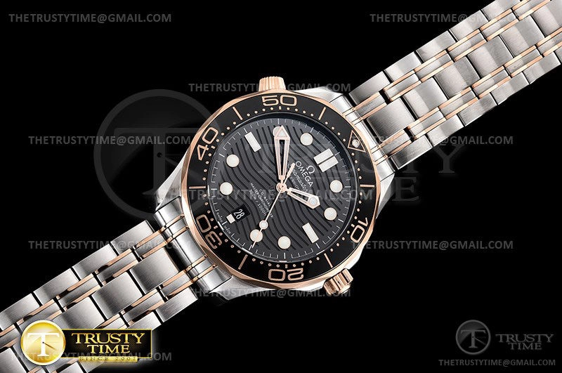 Часы Omega из коллекции Seamaster Diver. Классические мужские часы Omega Seamaster Diver 300m Co-axial Chronometer 42mm 210.20.42.20.01.001 премиального качества (Артикул магазина: OM-0676) оснащены надежным автоматическим механизмом с автоподзаводом (работает от амплитуды движения руки) калибра 8800, в котором реализованы следующие функции: часовая, минутная и секундная стрелки, а так же дата. Круглый корпус часов комбинированного сталь с розового золота цвета, имеющий размер 42 мм и высоту 13 мм превосходно дополнит образ и украсит запястье своего обладателя. Для изготовления часов Omega Seamaster Diver 300m Co-axial Chronometer 42mm 210.20.42.20.01.001 предлагаемых в нашем интернет-магазине, применяются нержавеющая сталь 316F высокого качества (Швейцарский стандарт), а так же сапфировое стекло высокой прочности, благодаря чему обеспечивается максимальная защита от сколов и механических повреждений. Отличительной чертой данной модели является черный циферблат, часовые индексы которого обеспечивают часовые метки. Завершает образ браслет из нержавеющей стали комбинированного сталь с розовым золотом цвета с фирменной раскладывающейся застежкой Omega. Водонепроницаемость данной модели составляет 30М (WR30) – допускается минимальное воздействие с водой.