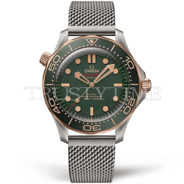 Часы Omega из коллекции Seamaster Diver. Классические мужские часы Omega Seamaster Diver 300 Co-axial Master Chronometer 42mm 210.90.42.20.10.001 премиального качества (Артикул магазина: OM-1026) оснащены надежным автоматическим механизмом с автоподзаводом (работает от амплитуды движения руки) калибра 8806, в котором реализованы следующие функции: часовая, минутная и секундная стрелки, а так же максимально простой функционал без усложнений. Круглый корпус часов серого цвета, имеющий размер 42 мм и высоту 13.8 мм превосходно дополнит образ и украсит запястье своего обладателя. Для изготовления часов Omega Seamaster Diver 300 Co-axial Master Chronometer 42mm 210.90.42.20.10.001 предлагаемых в нашем интернет-магазине, применяются титан высокого качества (Швейцарский стандарт), а так же сапфировое стекло высокой прочности, благодаря чему обеспечивается максимальная защита от сколов и механических повреждений. Отличительной чертой данной модели является зеленый циферблат, часовые индексы которого обеспечивают часовые метки. Завершает образ браслет из титанового сплава серого цвета с фирменной раскладывающейся застежкой Omega. Водонепроницаемость данной модели составляет 30М (WR30) – допускается минимальное воздействие с водой.