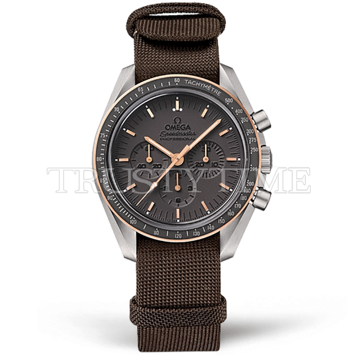 Часы Omega из коллекции SpeedMaster. Спортивные мужские часы Omega Speedmaster Professional Apollo 11 45th Anniversary 42mm 311.62.42.30.06.001 премиального качества (Артикул магазина: OM-0754) оснащены надежным автоматическим механизмом с ручным заводом калибра Venus 75, в котором реализованы следующие функции: часовая, минутная и секундная стрелки, а так же хронограф. Круглый корпус часов комбинированного сталь с розового золота цвета, имеющий размер 42 мм и высоту 15 мм превосходно дополнит образ и украсит запястье своего обладателя. Для изготовления часов Omega Speedmaster Professional Apollo 11 45th Anniversary 42mm 311.62.42.30.06.001 предлагаемых в нашем интернет-магазине, применяются нержавеющая сталь 316L высокого качества (Швейцарский стандарт), а так же сапфировое стекло высокой прочности, благодаря чему обеспечивается максимальная защита от сколов и механических повреждений. Отличительной чертой данной модели является серый циферблат, часовые индексы которого обеспечивают часовые метки. Завершает образ нейлоновый ремешок коричневого цвета с фирменной классической застежкой Omega. Водонепроницаемость данной модели составляет 30М (WR30) – допускается минимальное воздействие с водой.