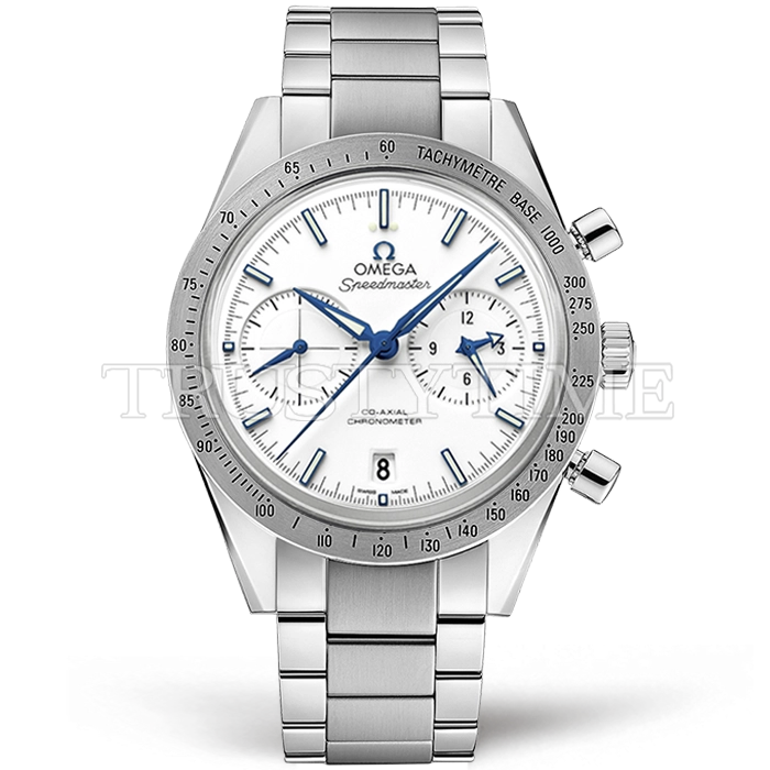 Часы Omega из коллекции SpeedMaster. Спортивные мужские часы Omega Speedmaster Speedmaster 57 Co-Axial Chronograph 41.5mm 331.90.42.51.04.001 премиального качества (Артикул магазина: OM-0738) оснащены надежным автоматическим механизмом с автоподзаводом (работает от амплитуды движения руки) калибра 9300, в котором реализованы следующие функции: часовая, минутная и секундная стрелки, а так же хронограф, дата. Круглый корпус часов стального цвета, имеющий размер 41.5 мм и высоту 18.5 мм превосходно дополнит образ и украсит запястье своего обладателя. Для изготовления часов Omega Speedmaster Speedmaster 57 Co-Axial Chronograph 41.5mm 331.90.42.51.04.001 предлагаемых в нашем интернет-магазине, применяются нержавеющая сталь 316F высокого качества (Швейцарский стандарт), а так же сапфировое стекло высокой прочности, благодаря чему обеспечивается максимальная защита от сколов и механических повреждений. Отличительной чертой данной модели является белый циферблат, часовые индексы которого обеспечивают часовые метки. Завершает образ браслет из нержавеющей стали стального цвета с фирменной раскладывающейся застежкой Omega. Водонепроницаемость данной модели составляет 30М (WR30) – допускается минимальное воздействие с водой.