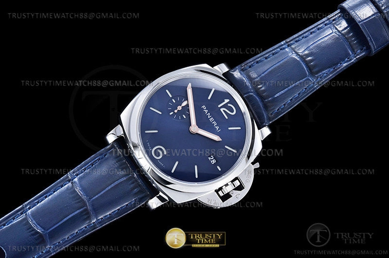 Часы Panerai из коллекции Luminor. Классические мужские часы Panerai Luminor Due 3 Days Date 42mm PAM01274 премиального качества (Артикул магазина: PN-0857) оснащены надежным автоматическим механизмом с автоподзаводом (работает от амплитуды движения руки) калибра P900, в котором реализованы следующие функции: часовая, минутная и секундная стрелки, а так же дата. Круглый корпус часов стального цвета, имеющий размер 42 мм и высоту 14 мм превосходно дополнит образ и украсит запястье своего обладателя. Для изготовления часов Panerai Luminor Due 3 Days Date 42mm PAM01274 предлагаемых в нашем интернет-магазине, применяются нержавеющая сталь 316F высокого качества (Швейцарский стандарт), а так же сапфировое стекло высокой прочности, благодаря чему обеспечивается максимальная защита от сколов и механических повреждений. Отличительной чертой данной модели является синий циферблат, часовые индексы которого обеспечивают часовые метки. Завершает образ кожаный ремешок синего цвета с фирменной классической застежкой Panerai. Водонепроницаемость данной модели составляет 30М (WR30) – допускается минимальное воздействие с водой.