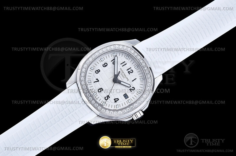 Часы Patek Philippe из коллекции Aquanaut Luce. Классические женские часы Patek Philippe Aquanaut Luce 38.8mm 5267/200A-010 премиального качества (Артикул магазина: PP-0822) оснащены надежным кварцевым механизмом (работает от батареи) калибра Swiss Quartz ETA, в котором реализованы следующие функции: часовая, минутная и секундная стрелки, а так же дата. Восьмиугольный корпус часов стального цвета, имеющий размер 38.8 мм и высоту 8 мм превосходно дополнит образ и украсит запястье своего обладателя. Для изготовления часов Patek Philippe Aquanaut Luce 38.8mm 5267/200A-010 предлагаемых в нашем интернет-магазине, применяются нержавеющая сталь 316F высокого качества (Швейцарский стандарт), а так же сапфировое стекло высокой прочности, благодаря чему обеспечивается максимальная защита от сколов и механических повреждений. Отличительной чертой данной модели является белый циферблат, часовые индексы которого обеспечивают арабские цифры. Завершает образ каучуковый ремешок белого цвета с фирменной раскладывающейся застежкой Patek Philippe. Водонепроницаемость данной модели составляет 30М (WR30) – допускается минимальное воздействие с водой.