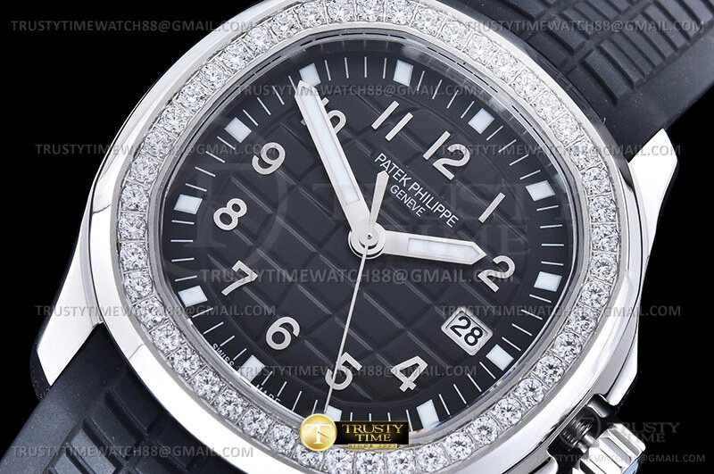 Часы Patek Philippe из коллекции Aquanaut Luce. Классические женские часы Patek Philippe Aquanaut Luce 38.8mm 5267/200A-001 премиального качества (Артикул магазина: PP-0823) оснащены надежным кварцевым механизмом (работает от батареи) калибра Swiss Quartz ETA, в котором реализованы следующие функции: часовая, минутная и секундная стрелки, а так же дата. Восьмиугольный корпус часов стального цвета, имеющий размер 38.8 мм и высоту 8 мм превосходно дополнит образ и украсит запястье своего обладателя. Для изготовления часов Patek Philippe Aquanaut Luce 38.8mm 5267/200A-001 предлагаемых в нашем интернет-магазине, применяются нержавеющая сталь 316F высокого качества (Швейцарский стандарт), а так же сапфировое стекло высокой прочности, благодаря чему обеспечивается максимальная защита от сколов и механических повреждений. Отличительной чертой данной модели является черный циферблат, часовые индексы которого обеспечивают арабские цифры. Завершает образ каучуковый ремешок черного цвета с фирменной раскладывающейся застежкой Patek Philippe. Водонепроницаемость данной модели составляет 30М (WR30) – допускается минимальное воздействие с водой.