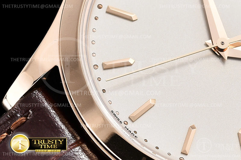 Часы Patek Philippe из коллекции Calatrava. Классические мужские часы Patek Philippe Calatrava 38mm 5296R-010 премиального качества (Артикул магазина: PP-0406) оснащены надежным автоматическим механизмом с автоподзаводом (работает от амплитуды движения руки) калибра PP324CS, в котором реализованы следующие функции: часовая, минутная и секундная стрелки, а так же дата. Круглый корпус часов розового цвета, имеющий размер 38 мм и высоту 9 мм превосходно дополнит образ и украсит запястье своего обладателя. Для изготовления часов Patek Philippe Calatrava 38mm 5296R-010 предлагаемых в нашем интернет-магазине, применяются нержавеющая сталь 316F высокого качества (Швейцарский стандарт), а так же сапфировое стекло высокой прочности, благодаря чему обеспечивается максимальная защита от сколов и механических повреждений. Отличительной чертой данной модели является белый циферблат, часовые индексы которого обеспечивают часовые метки. Завершает образ кожаный ремешок коричневого цвета с фирменной классической застежкой Patek Philippe. Водонепроницаемость данной модели составляет 30М (WR30) – допускается минимальное воздействие с водой.