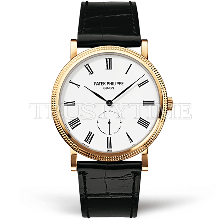Часы Patek Philippe из коллекции Calatrava. Классические мужские часы Patek Philippe Calatrava 36mm 5119J-001 премиального качества (Артикул магазина: PP-0760) оснащены надежным автоматическим механизмом с ручным заводом калибра Seagull ST19, в котором реализованы следующие функции: часовая, минутная и секундная стрелки, а так же максимально простой функционал без усложнений. Круглый корпус часов цветы желтой золота, имеющий размер 36 мм и высоту 7.5 мм превосходно дополнит образ и украсит запястье своего обладателя. Для изготовления часов Patek Philippe Calatrava 36mm 5119J-001 предлагаемых в нашем интернет-магазине, применяются нержавеющая сталь 316F высокого качества (Швейцарский стандарт), а так же сапфировое стекло высокой прочности, благодаря чему обеспечивается максимальная защита от сколов и механических повреждений. Отличительной чертой данной модели является белый циферблат, часовые индексы которого обеспечивают римские цифры. Завершает образ кожаный ремешок черного цвета с фирменной классической застежкой Patek Philippe. Водонепроницаемость данной модели составляет 30М (WR30) – допускается минимальное воздействие с водой.