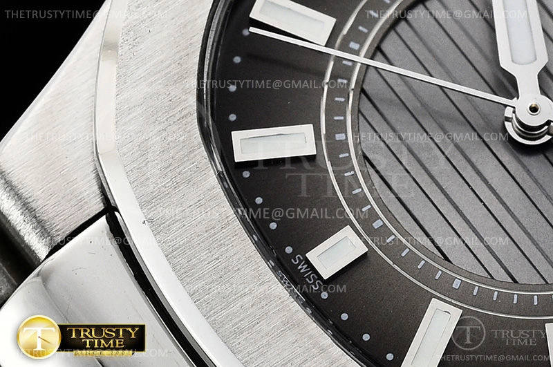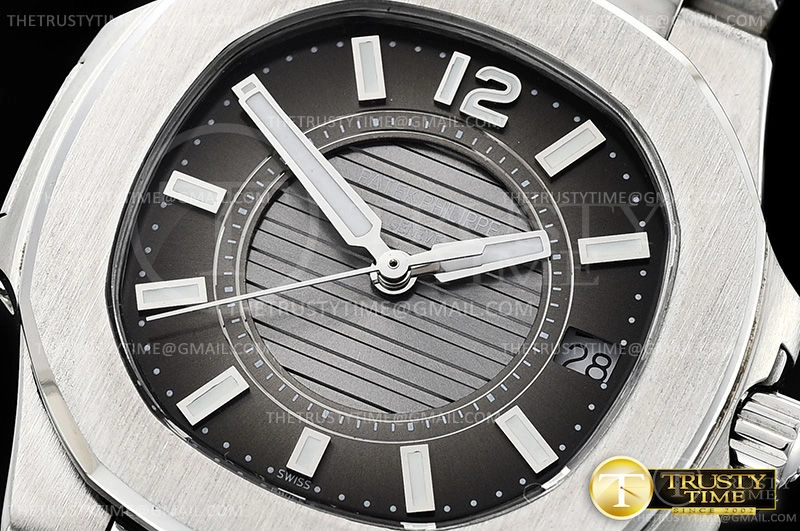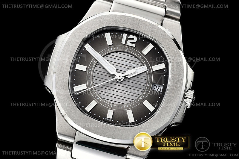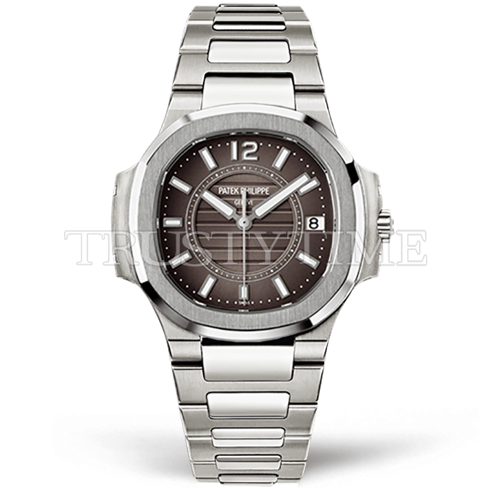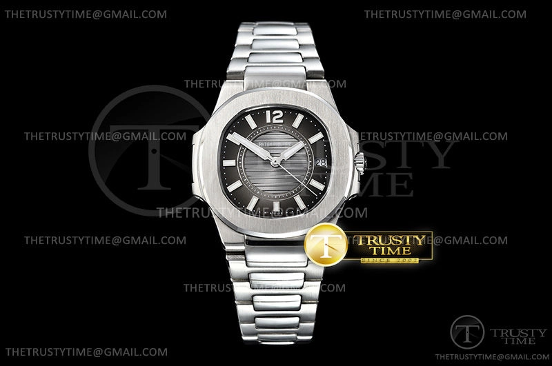 Часы Patek Philippe из коллекции Nautilus. Классические женские часы Patek Philippe Nautilus Ladies 32mm 7011/1G-010 премиального качества (Артикул магазина: PP-0510) оснащены надежным кварцевым механизмом (работает от батареи) калибра Swiss Quartz ETA, в котором реализованы следующие функции: часовая, минутная и секундная стрелки, а так же дата. Восьмиугольный корпус часов стального цвета, имеющий размер 32 мм и высоту 7 мм превосходно дополнит образ и украсит запястье своего обладателя. Для изготовления часов Patek Philippe Nautilus Ladies 32mm 7011/1G-010 предлагаемых в нашем интернет-магазине, применяются нержавеющая сталь 316L высокого качества (Швейцарский стандарт), а так же сапфировое стекло высокой прочности, благодаря чему обеспечивается максимальная защита от сколов и механических повреждений. Отличительной чертой данной модели является серый циферблат, часовые индексы которого обеспечивают часовые метки. Завершает образ браслет из нержавеющей стали стального цвета с фирменной раскладывающейся застежкой Patek Philippe. Водонепроницаемость данной модели составляет 30М (WR30) – допускается минимальное воздействие с водой.