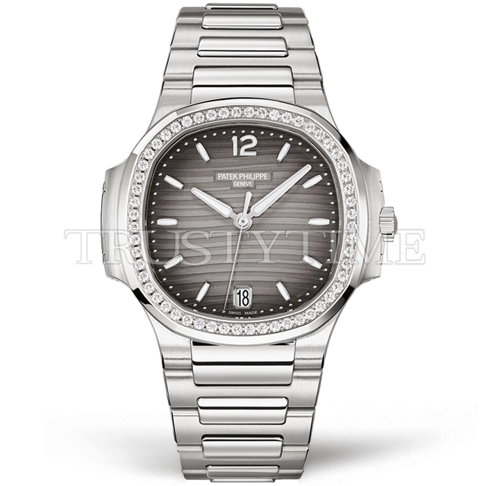 Часы Patek Philippe из коллекции Nautilus. Классические женские часы Patek Philippe Nautilus Ladies 35mm 7118/1200A-011 премиального качества (Артикул магазина: PP-0777) оснащены надежным автоматическим механизмом с автоподзаводом (работает от амплитуды движения руки) калибра PP324CS, в котором реализованы следующие функции: часовая, минутная и секундная стрелки, а так же дата. Восьмиугольный корпус часов стального цвета, имеющий размер 35 мм и высоту 8.3 мм превосходно дополнит образ и украсит запястье своего обладателя. Для изготовления часов Patek Philippe Nautilus Ladies 35mm 7118/1200A-011 предлагаемых в нашем интернет-магазине, применяются нержавеющая сталь 316F высокого качества (Швейцарский стандарт), а так же сапфировое стекло высокой прочности, благодаря чему обеспечивается максимальная защита от сколов и механических повреждений. Отличительной чертой данной модели является серый циферблат, часовые индексы которого обеспечивают часовые метки. Завершает образ браслет из нержавеющей стали стального цвета с фирменной раскладывающейся застежкой Patek Philippe. Водонепроницаемость данной модели составляет 30М (WR30) – допускается минимальное воздействие с водой.