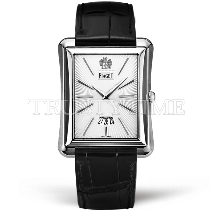 Часы Piaget из коллекции Emperador. Классические мужские часы Piaget Emperador Date 36mm G0A32120 премиального качества (Артикул магазина: PG-0167) оснащены надежным автоматическим механизмом с автоподзаводом (работает от амплитуды движения руки) калибра MY9015, в котором реализованы следующие функции: часова и минутка стрелки, а так же дата. Прямоугольный корпус часов стального цвета, имеющий размер 36 мм x 46 мм и высоту 9.6 мм превосходно дополнит образ и украсит запястье своего обладателя. Для изготовления часов Piaget Emperador Date 36mm G0A32120 предлагаемых в нашем интернет-магазине, применяются нержавеющая сталь 316L высокого качества (Швейцарский стандарт), а так же сапфировое стекло высокой прочности, благодаря чему обеспечивается максимальная защита от сколов и механических повреждений. Отличительной чертой данной модели является серебристый циферблат, часовые индексы которого обеспечивают часовые метки. Завершает образ кожаный ремешок черного цвета с фирменной раскладывающейся застежкой Piaget. Водонепроницаемость данной модели составляет 30М (WR30) – допускается минимальное воздействие с водой.