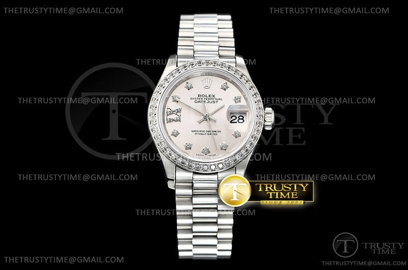 Часы Rolex из коллекции DateJust. Классические женские часы Rolex DateJust 28mm 279139RBR-0003 премиального качества (Артикул магазина: RX-0205) оснащены надежным автоматическим механизмом с автоподзаводом (работает от амплитуды движения руки) калибра ETA2671, в котором реализованы следующие функции: часовая, минутная и секундная стрелки, а так же дата. Круглый корпус часов стального цвета, имеющий размер 28 мм и высоту 11 мм превосходно дополнит образ и украсит запястье своего обладателя. Для изготовления часов Rolex DateJust 28mm 279139RBR-0003 предлагаемых в нашем интернет-магазине, применяются нержавеющая сталь 316F высокого качества (Швейцарский стандарт), а так же сапфировое стекло высокой прочности, благодаря чему обеспечивается максимальная защита от сколов и механических повреждений. Отличительной чертой данной модели является серебристый циферблат, часовые индексы которого обеспечивают камни. Завершает образ браслет из нержавеющей стали стального цвета с фирменной раскладывающейся застежкой Rolex. Водонепроницаемость данной модели составляет 30М (WR30) – допускается минимальное воздействие с водой.