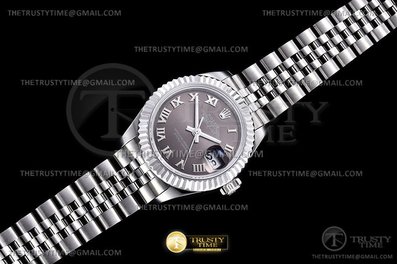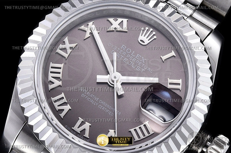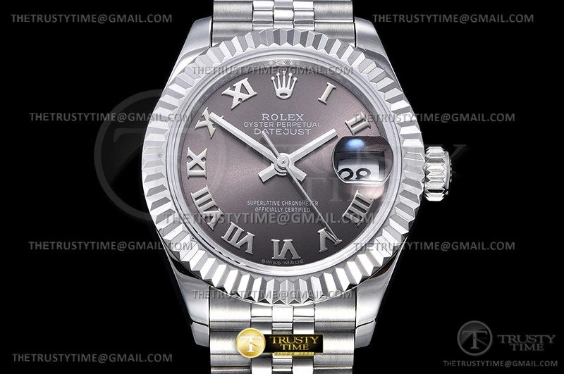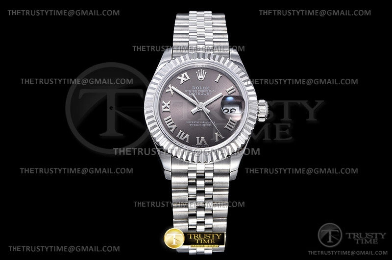 Часы Rolex из коллекции DateJust. Классические женские часы Rolex DateJust 28mm 279174-0013 премиального качества (Артикул магазина: RX-2026) оснащены надежным автоматическим механизмом с автоподзаводом (работает от амплитуды движения руки) калибра ETA2671, в котором реализованы следующие функции: часовая, минутная и секундная стрелки, а так же дата. Круглый корпус часов стального цвета, имеющий размер 28 мм и высоту 11 мм превосходно дополнит образ и украсит запястье своего обладателя. Для изготовления часов Rolex DateJust 28mm 279174-0013 предлагаемых в нашем интернет-магазине, применяются нержавеющая сталь 904L высокого качества (Швейцарский стандарт), а так же сапфировое стекло высокой прочности, благодаря чему обеспечивается максимальная защита от сколов и механических повреждений. Отличительной чертой данной модели является серый циферблат, часовые индексы которого обеспечивают римские цифры. Завершает образ браслет из нержавеющей стали стального цвета с фирменной раскладывающейся застежкой Rolex. Водонепроницаемость данной модели составляет 30М (WR30) – допускается минимальное воздействие с водой.
