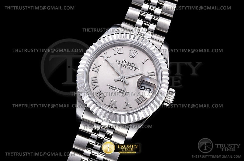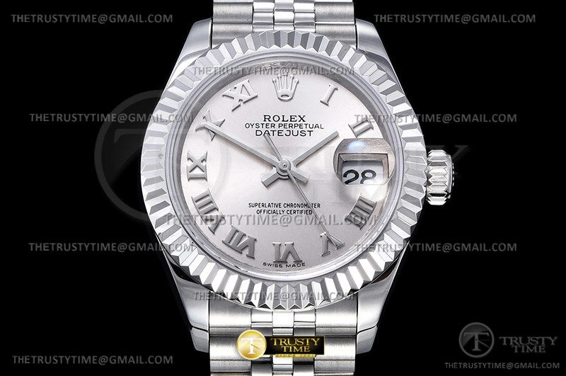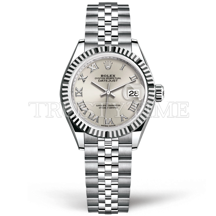 Часы Rolex из коллекции DateJust. Классические женские часы Rolex DateJust 28mm 279174-0007 премиального качества (Артикул магазина: RX-2027) оснащены надежным автоматическим механизмом с автоподзаводом (работает от амплитуды движения руки) калибра ETA2671, в котором реализованы следующие функции: часовая, минутная и секундная стрелки, а так же дата. Круглый корпус часов стального цвета, имеющий размер 28 мм и высоту 11 мм превосходно дополнит образ и украсит запястье своего обладателя. Для изготовления часов Rolex DateJust 28mm 279174-0007 предлагаемых в нашем интернет-магазине, применяются нержавеющая сталь 904L высокого качества (Швейцарский стандарт), а так же сапфировое стекло высокой прочности, благодаря чему обеспечивается максимальная защита от сколов и механических повреждений. Отличительной чертой данной модели является серебристый циферблат, часовые индексы которого обеспечивают римские цифры. Завершает образ браслет из нержавеющей стали стального цвета с фирменной раскладывающейся застежкой Rolex. Водонепроницаемость данной модели составляет 30М (WR30) – допускается минимальное воздействие с водой.