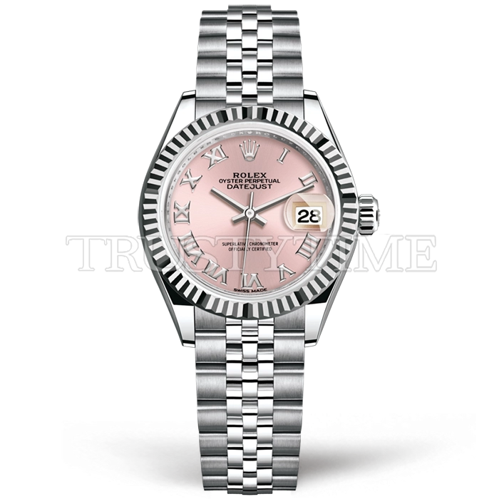 Часы Rolex из коллекции DateJust. Классические женские часы Rolex DateJust 28mm 279174-0013 премиального качества (Артикул магазина: RX-2028) оснащены надежным автоматическим механизмом с автоподзаводом (работает от амплитуды движения руки) калибра ETA2671, в котором реализованы следующие функции: часовая, минутная и секундная стрелки, а так же дата. Круглый корпус часов стального цвета, имеющий размер 28 мм и высоту 11 мм превосходно дополнит образ и украсит запястье своего обладателя. Для изготовления часов Rolex DateJust 28mm 279174-0013 предлагаемых в нашем интернет-магазине, применяются нержавеющая сталь 904L высокого качества (Швейцарский стандарт), а так же сапфировое стекло высокой прочности, благодаря чему обеспечивается максимальная защита от сколов и механических повреждений. Отличительной чертой данной модели является розовый циферблат, часовые индексы которого обеспечивают римские цифры. Завершает образ браслет из нержавеющей стали стального цвета с фирменной раскладывающейся застежкой Rolex. Водонепроницаемость данной модели составляет 30М (WR30) – допускается минимальное воздействие с водой.