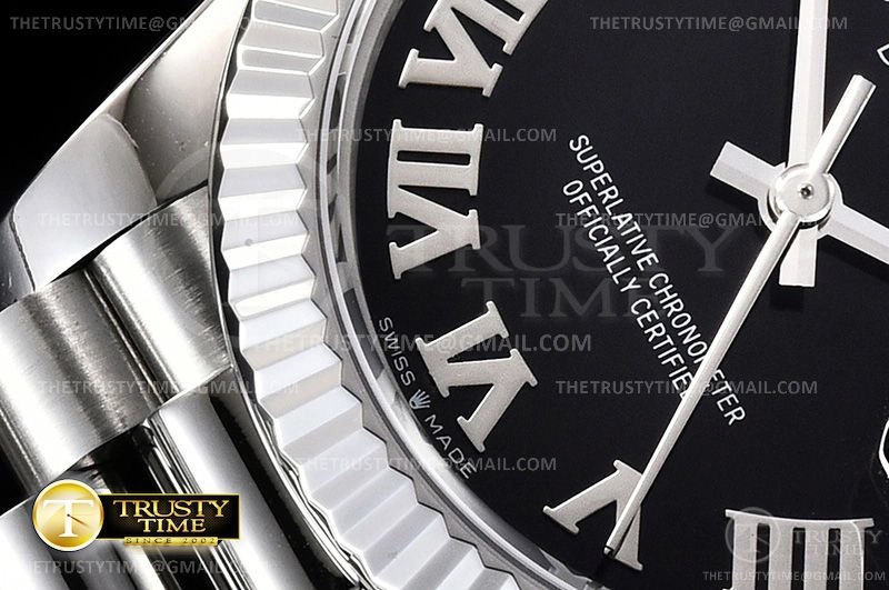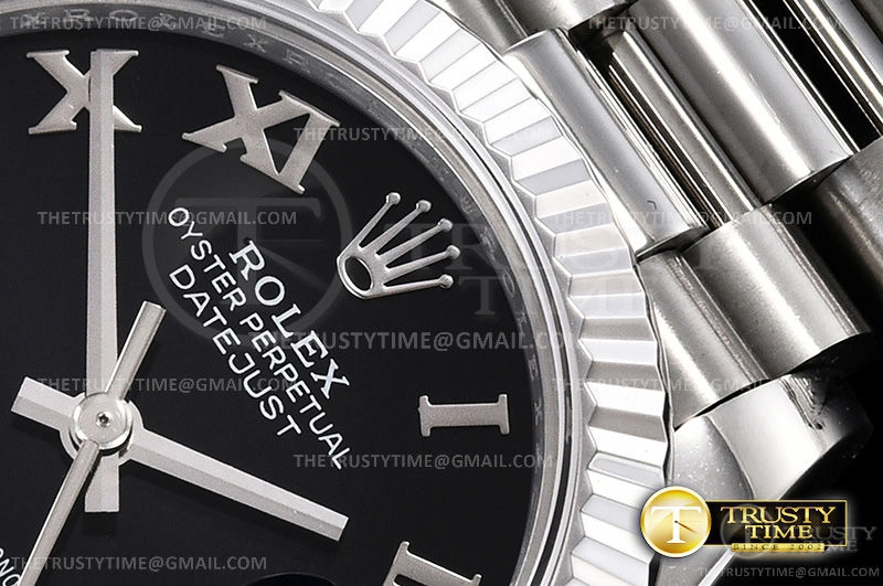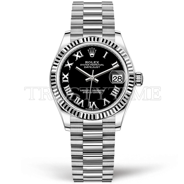 Часы Rolex из коллекции DateJust. Классические женские часы Rolex DateJust 31mm 178279-0082 премиального качества (Артикул магазина: RX-0587) оснащены надежным автоматическим механизмом с автоподзаводом (работает от амплитуды движения руки) калибра ETA2824-2, в котором реализованы следующие функции: часовая, минутная и секундная стрелки, а так же дата. Круглый корпус часов стального цвета, имеющий размер 31 мм и высоту 12 мм превосходно дополнит образ и украсит запястье своего обладателя. Для изготовления часов Rolex DateJust 31mm 178279-0082 предлагаемых в нашем интернет-магазине, применяются нержавеющая сталь 316F высокого качества (Швейцарский стандарт), а так же сапфировое стекло высокой прочности, благодаря чему обеспечивается максимальная защита от сколов и механических повреждений. Отличительной чертой данной модели является черный циферблат, часовые индексы которого обеспечивают римские цифры. Завершает образ браслет из нержавеющей стали стального цвета с фирменной раскладывающейся застежкой Rolex. Водонепроницаемость данной модели составляет 30М (WR30) – допускается минимальное воздействие с водой.