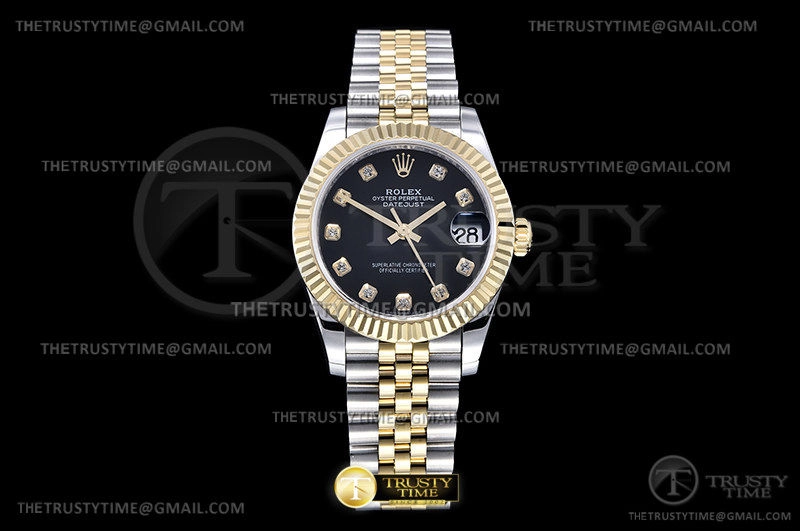 Часы Rolex из коллекции DateJust. Классические женские часы Rolex DateJust 31mm 178273-0020 премиального качества (Артикул магазина: RX-2064) оснащены надежным автоматическим механизмом с автоподзаводом (работает от амплитуды движения руки) калибра ETA2836-2, в котором реализованы следующие функции: часовая, минутная и секундная стрелки, а так же дата. Круглый корпус часов комбинированного сталь с желтого золота цвета, имеющий размер 31 мм и высоту 12 мм превосходно дополнит образ и украсит запястье своего обладателя. Для изготовления часов Rolex DateJust 31mm 178273-0020 предлагаемых в нашем интернет-магазине, применяются нержавеющая сталь 316F высокого качества (Швейцарский стандарт), а так же сапфировое стекло высокой прочности, благодаря чему обеспечивается максимальная защита от сколов и механических повреждений. Отличительной чертой данной модели является черный циферблат, часовые индексы которого обеспечивают камни. Завершает образ браслет из нержавеющей стали комбинированного сталь с желтым золотом цвета с фирменной раскладывающейся застежкой Rolex. Водонепроницаемость данной модели составляет 30М (WR30) – допускается минимальное воздействие с водой.