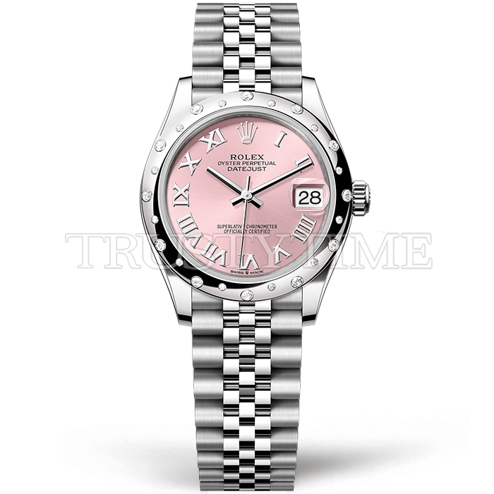 Часы Rolex из коллекции DateJust. Классические женские часы Rolex DateJust 31mm 278344RBR-0022 премиального качества (Артикул магазина: RX-3042) оснащены надежным автоматическим механизмом с автоподзаводом (работает от амплитуды движения руки) калибра ETA2688, в котором реализованы следующие функции: часовая, минутная и секундная стрелки, а так же дата. Круглый корпус часов стального цвета, имеющий размер 31 мм и высоту 12 мм превосходно дополнит образ и украсит запястье своего обладателя. Для изготовления часов Rolex DateJust 31mm 278344RBR-0022 предлагаемых в нашем интернет-магазине, применяются нержавеющая сталь 904L высокого качества (Швейцарский стандарт), а так же сапфировое стекло высокой прочности, благодаря чему обеспечивается максимальная защита от сколов и механических повреждений. Отличительной чертой данной модели является розовый циферблат, часовые индексы которого обеспечивают римские цифры. Завершает образ браслет из нержавеющей стали стального цвета с фирменной раскладывающейся застежкой Rolex. Водонепроницаемость данной модели составляет 30М (WR30) – допускается минимальное воздействие с водой.