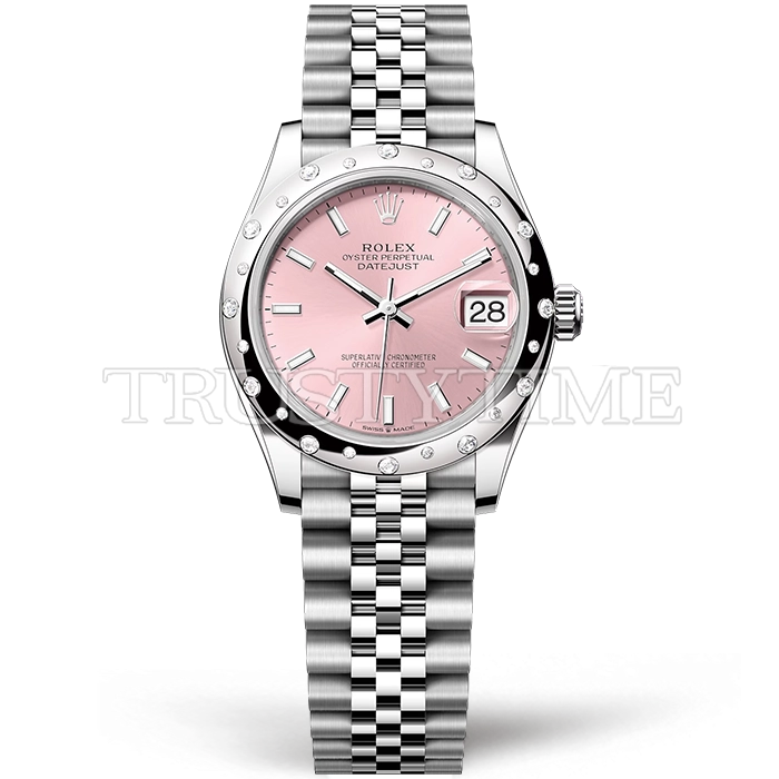Часы Rolex из коллекции DateJust. Классические женские часы Rolex DateJust 31mm 278344RBR-0016 премиального качества (Артикул магазина: RX-3076) оснащены надежным автоматическим механизмом с автоподзаводом (работает от амплитуды движения руки) калибра ETA2688, в котором реализованы следующие функции: часовая, минутная и секундная стрелки, а так же дата. Круглый корпус часов стального цвета, имеющий размер 31 мм и высоту 12 мм превосходно дополнит образ и украсит запястье своего обладателя. Для изготовления часов Rolex DateJust 31mm 278344RBR-0016 предлагаемых в нашем интернет-магазине, применяются нержавеющая сталь 904L высокого качества (Швейцарский стандарт), а так же сапфировое стекло высокой прочности, благодаря чему обеспечивается максимальная защита от сколов и механических повреждений. Отличительной чертой данной модели является розовый циферблат, часовые индексы которого обеспечивают часовые метки. Завершает образ браслет из нержавеющей стали стального цвета с фирменной раскладывающейся застежкой Rolex. Водонепроницаемость данной модели составляет 30М (WR30) – допускается минимальное воздействие с водой.