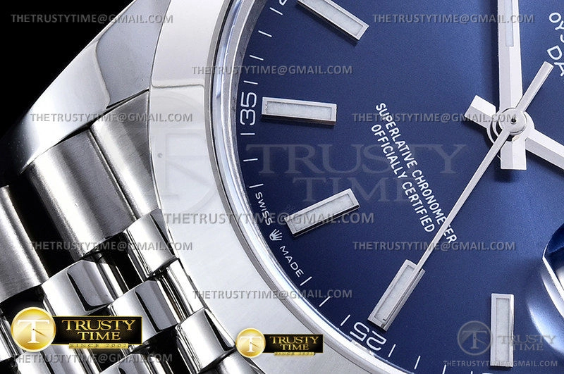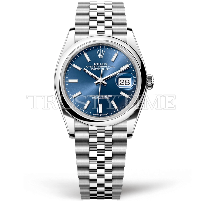 Часы Rolex из коллекции DateJust. Классические женские часы Rolex DateJust 36mm 126200-0005 премиального качества (Артикул магазина: RX-1819) оснащены надежным автоматическим механизмом с автоподзаводом (работает от амплитуды движения руки) калибра 3235, в котором реализованы следующие функции: часовая, минутная и секундная стрелки, а так же дата. Круглый корпус часов стального цвета, имеющий размер 36 мм и высоту 12 мм превосходно дополнит образ и украсит запястье своего обладателя. Для изготовления часов Rolex DateJust 36mm 126200-0005 предлагаемых в нашем интернет-магазине, применяются нержавеющая сталь 904L высокого качества (Швейцарский стандарт), а так же сапфировое стекло высокой прочности, благодаря чему обеспечивается максимальная защита от сколов и механических повреждений. Отличительной чертой данной модели является синий циферблат, часовые индексы которого обеспечивают часовые метки. Завершает образ браслет из нержавеющей стали стального цвета с фирменной раскладывающейся застежкой Rolex. Водонепроницаемость данной модели составляет 30М (WR30) – допускается минимальное воздействие с водой.